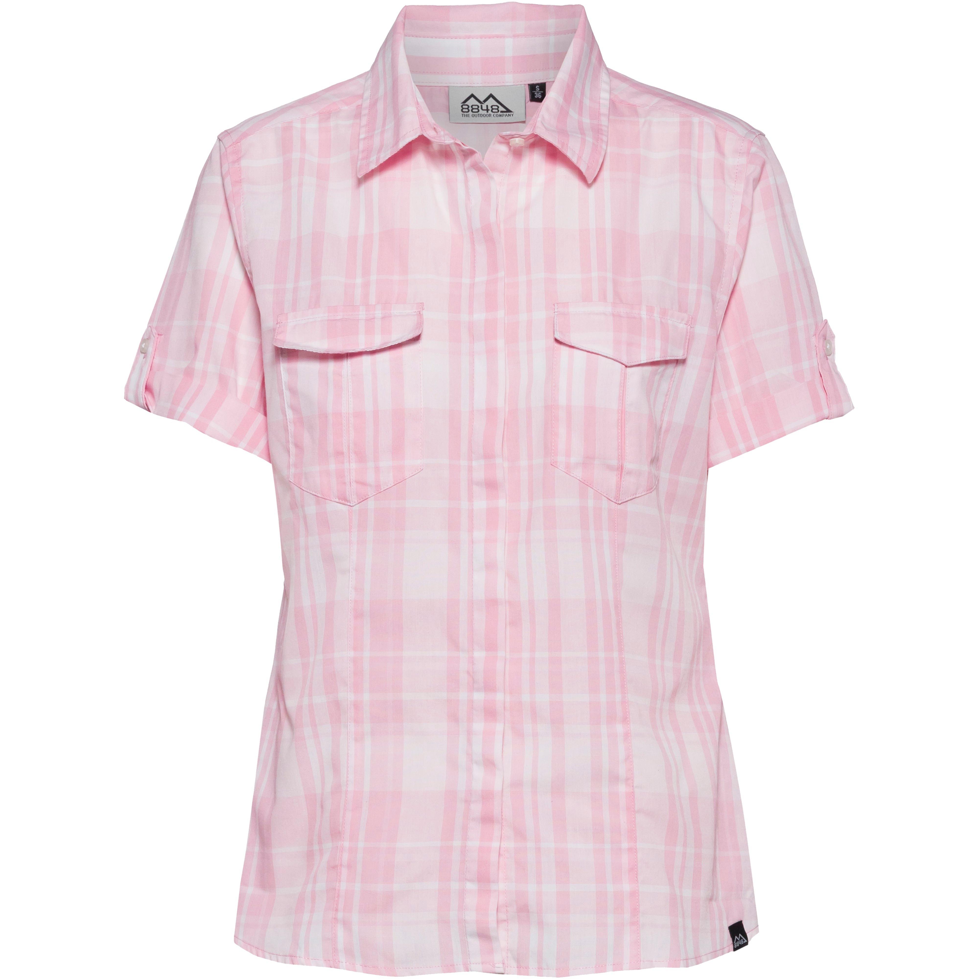 Funktionsbluse mit kurzen Ärmeln, feuchtigkeitsregulierendes Gewebe; klassischer Kragen; durchgehende Knopfleiste; 2 Brusttaschen; Material 65% Polyester, 35% Baumwolle.