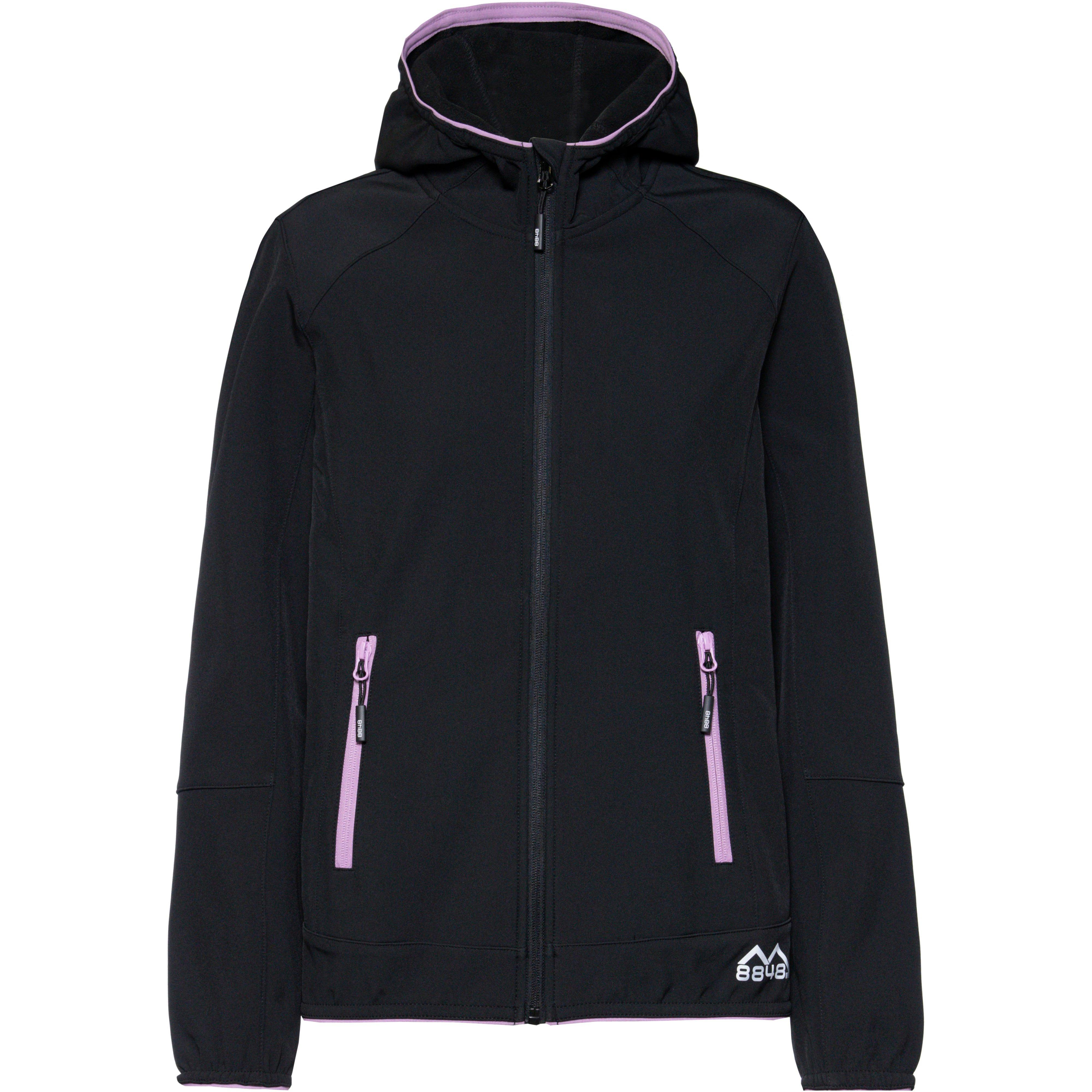 Softshelljacke mit wärmendem Fleecefutter; Kapuze; Kragen mit Kinnschutz; enganliegende Armabschlüsse; hinterlegter Frontreißverschluss; 2 Fronttaschen mit Reißverschlüssen; verlängerte Zippbändchen; Markendetails; Obermaterial 96% Polyester, 4% Elastan, Futter 100% Polyester.