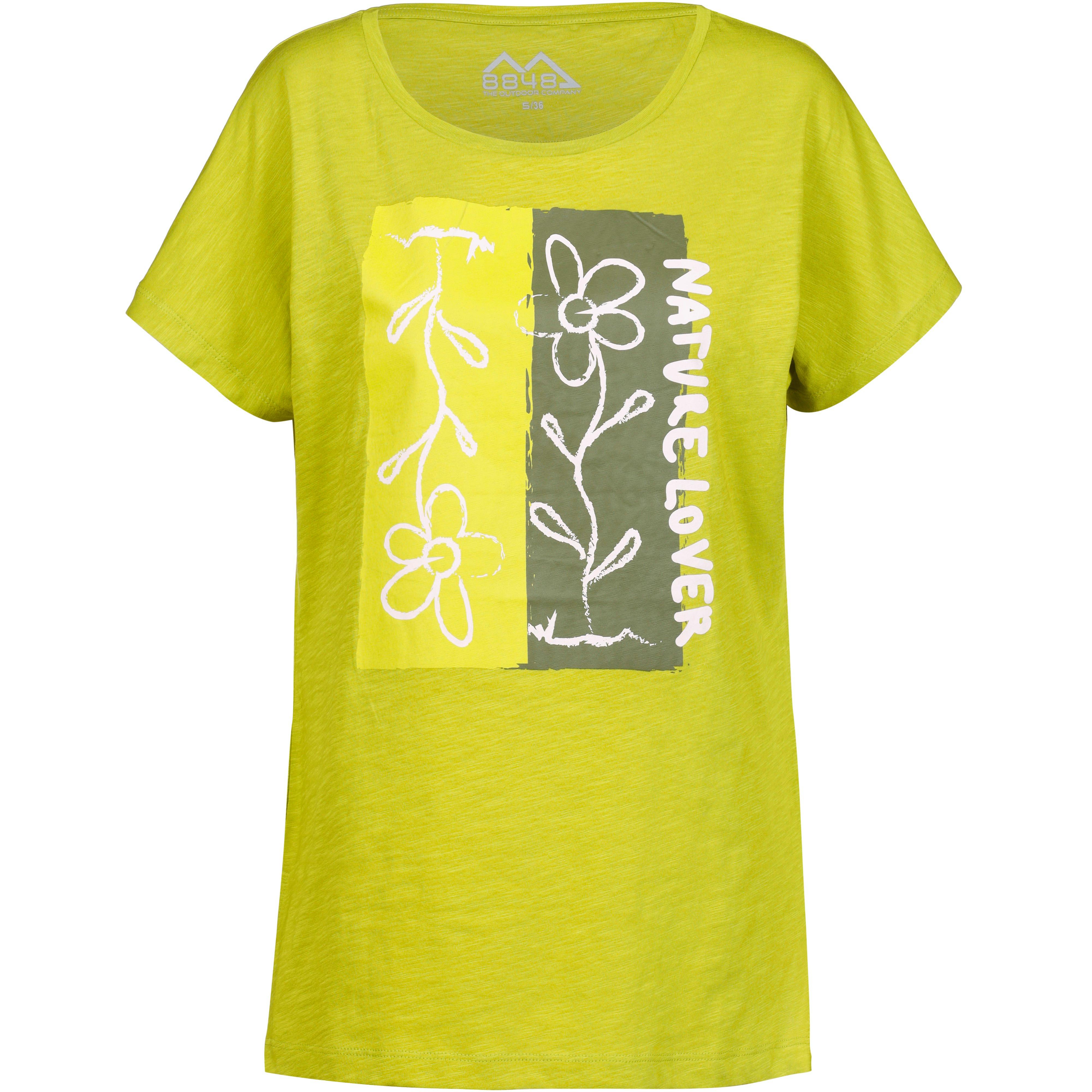 T-Shirt mit großem Grafikprint auf der Vorderseite; meliertes Design; Rundhalsausschnitt; seitlich geschlitzter Saum; Material 100% Baumwolle.