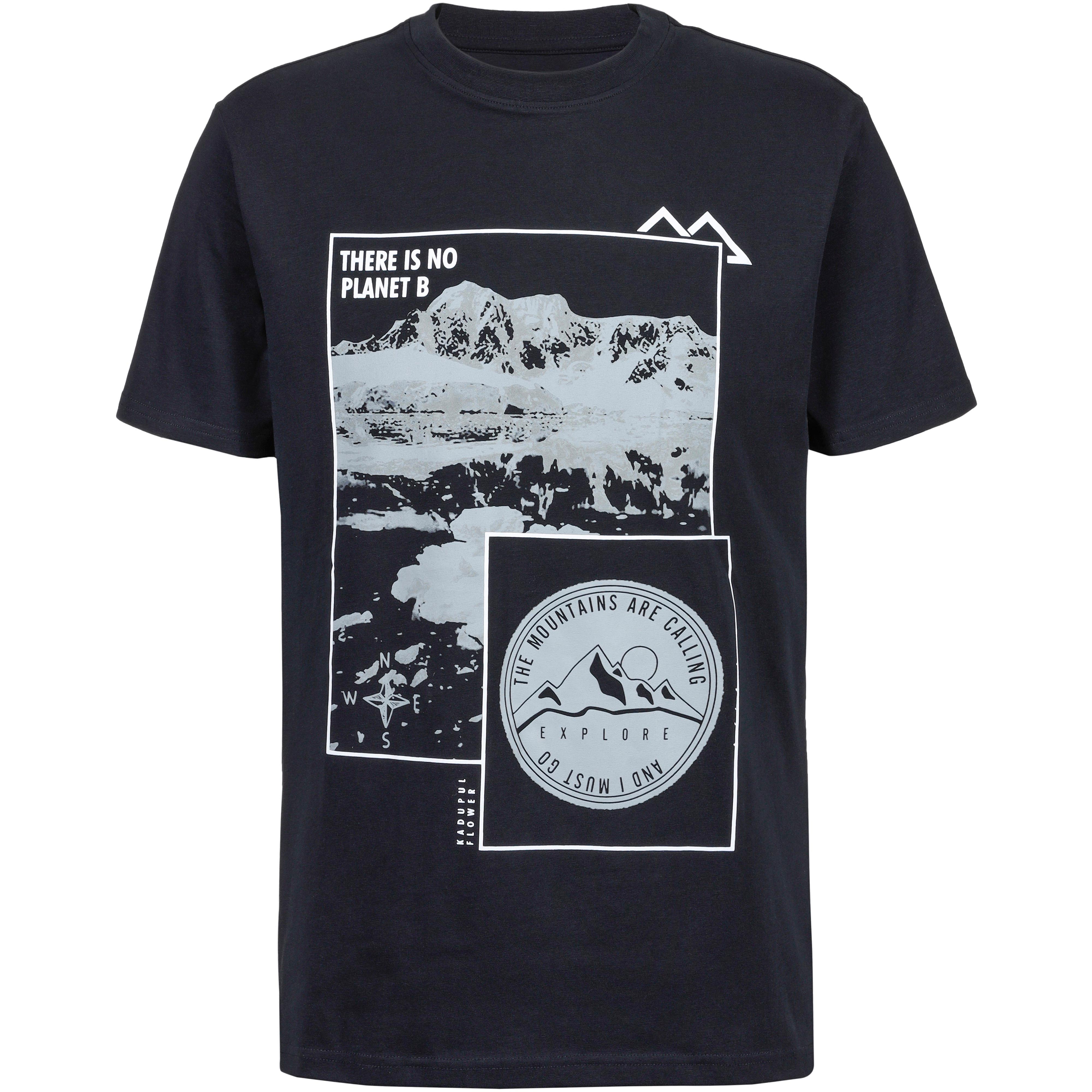 T-Shirt mit großem Outdoor-Mountain-Print; leicht elastisches Baumwollgewebe; normale Passform mit Rundhalsausschnitt und kurzen Ärmeln; Material 95% Baumwolle, 5% Elastan.