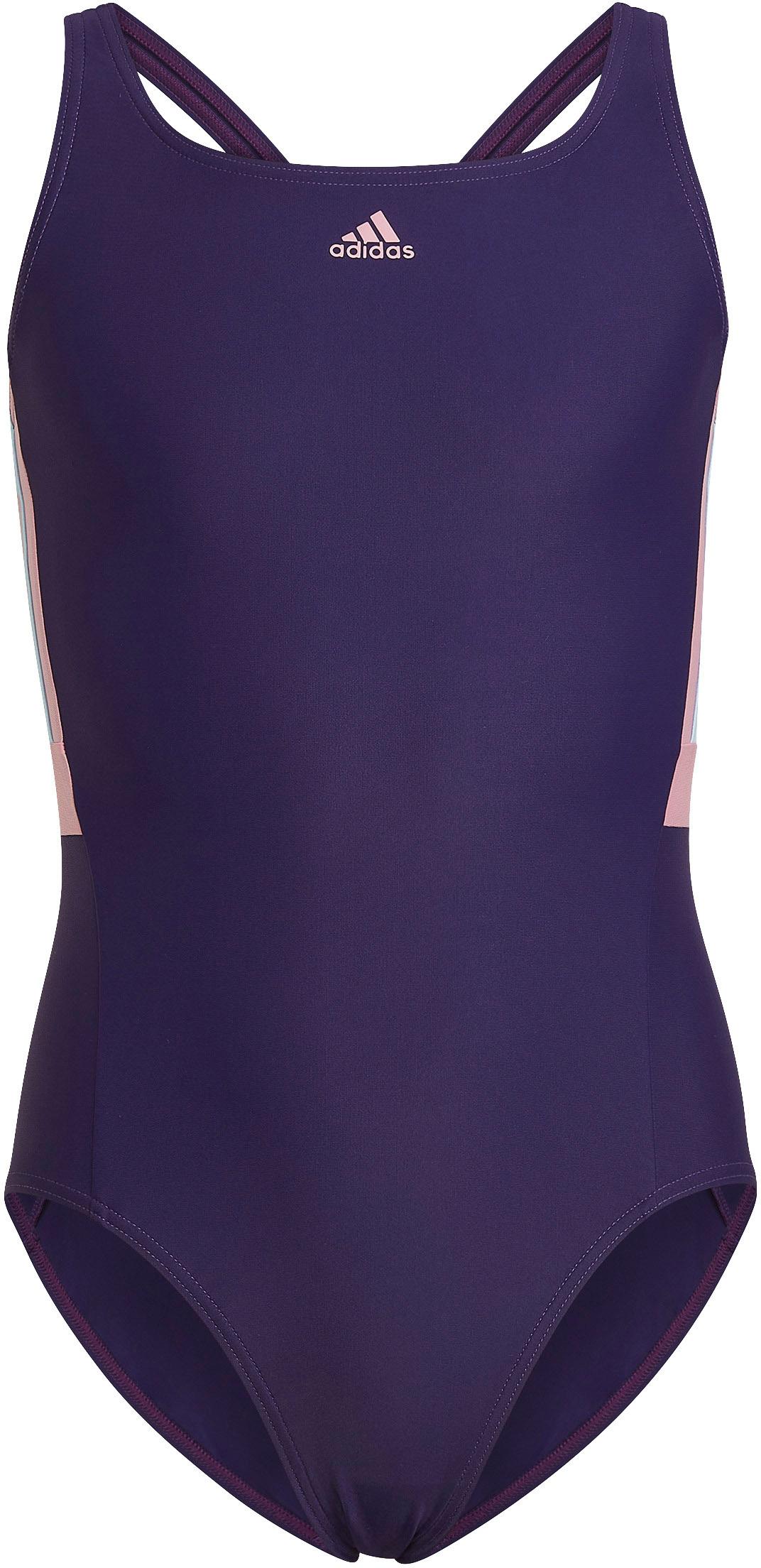 Badeanzug mit gummierten 3-Streifen-Prints an den Seiten; Rundhalsausschnitt; breite Träger; V-förmiges Rückenteil mit Cut Out; normaler Beinausschnitt; chlorresistentes und recyceltes Infintex® Fitness Eco-Material; mit Econyl® Garnen hergestellt, die aus recycelten Fischernetzen und Plastikabfall bestehen; Material 78% Polyamid (recycelt), 22% Elastan.