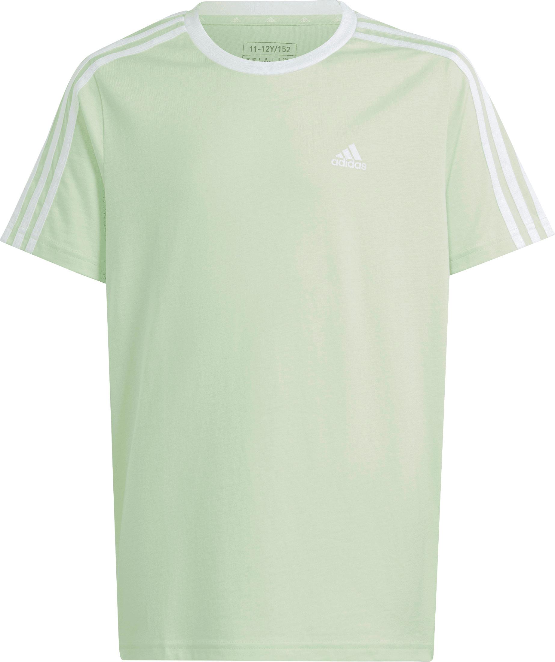 Schlichtes Baumwollshirt im Basic-Style; runder Halsausschnitt; Logodetail auf der Brust; 3-Streifen an den kurzen Ärmeln; Material 100% Baumwolle.