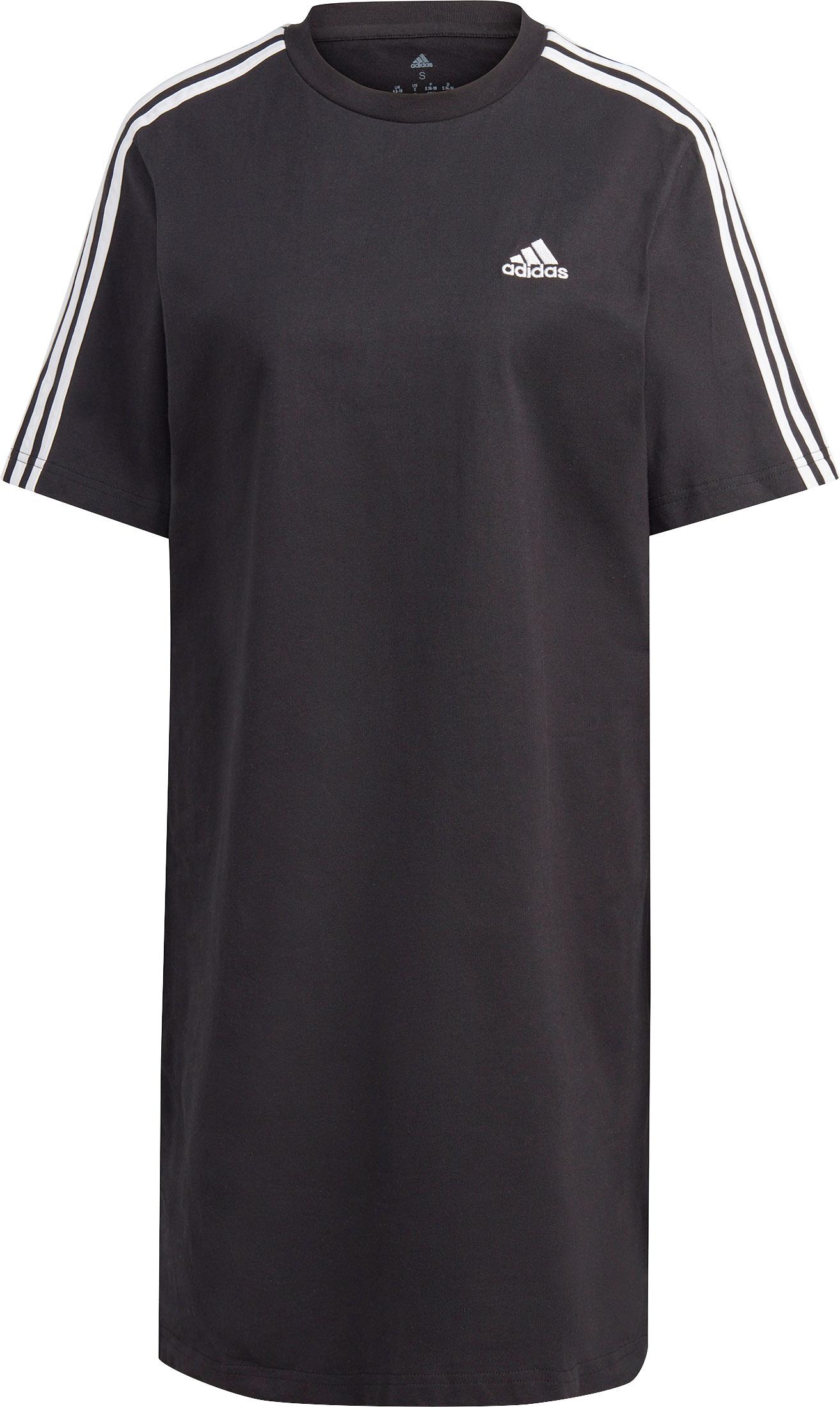T-Shirt-Kleid aus reiner Baumwolle mit geripptem Rundhalsausschnitt und weichem Nackenband; 3-Streifen-Design am Ärmel; Logo-Stickerei auf Brusthöhe; gerader Schnitt; Material 100% Baumwolle.
