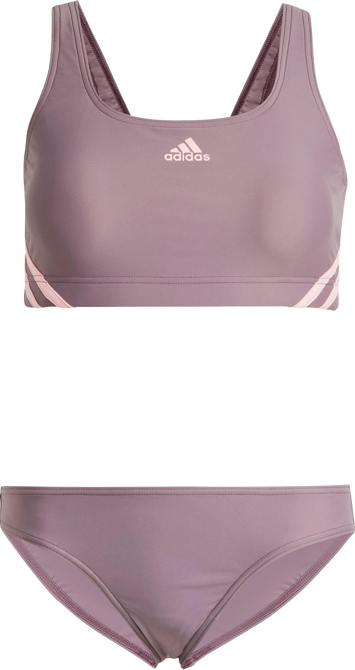 Sportives Bikini-Set im markentypischen Design; elastisches Gewebe; Oberteil mit seitlichen 3-Streifen; abgerundeter Ausschnitt; normale Träger; Cut-out am Rücken; Slip mit mittelhohem Bund; Material 78% Polyamid (recycelt), 22% Elastan.