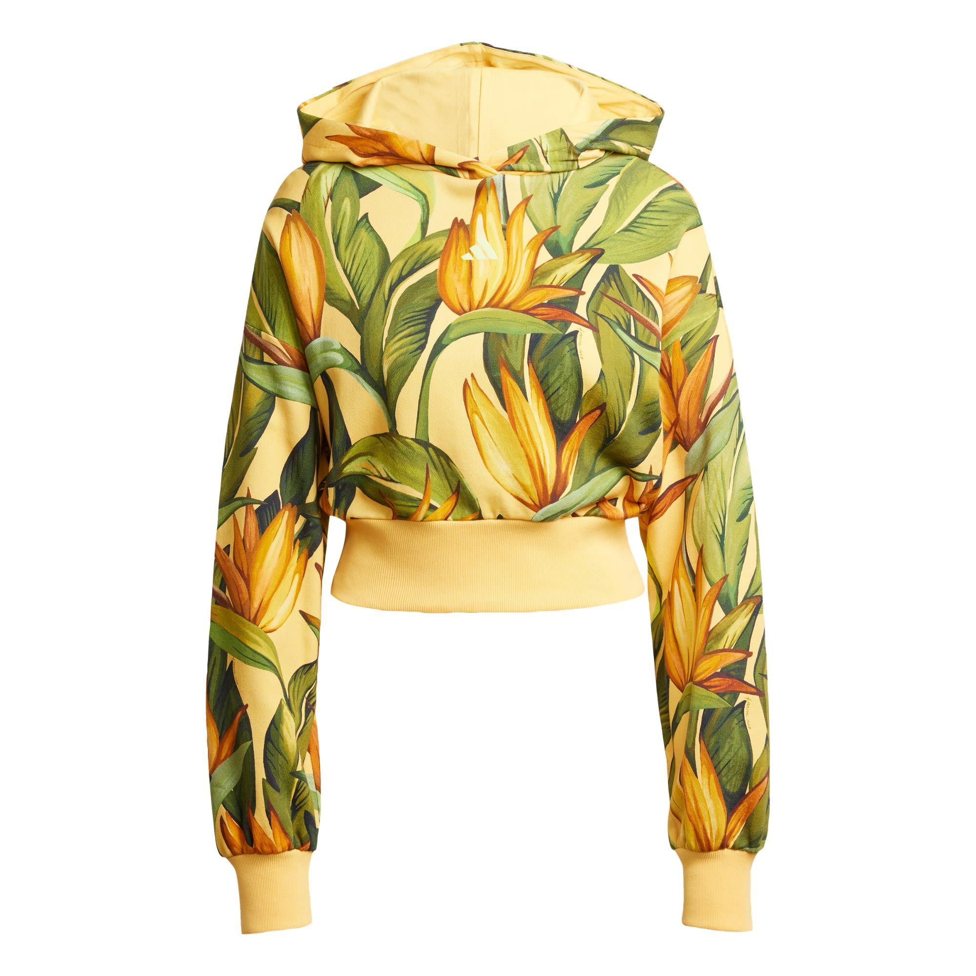 Mit diesem adidas Hoodie bringst du tropische Vibes in deinen Look. Er kombiniert adidas Sportswear mit dem brasilianischen Flair von FARM Rio. Sein weiches, flexibles Material kommt mit einem bunten Allover-Print, der von einer Wüstenoase inspiriert ist. Die klassische Passform und die überschnittenen Schultern geben dir volle Bewegungsfreiheit, egal, ob du dich mit Freund_innen triffst oder dich durch deine To-do-Liste arbeitest. Hol dir lässigen Komfort und genieß tropische Vibes, egal, was dein Tag für dich bereithält.