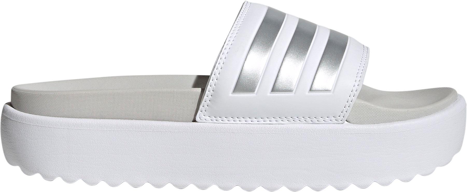 Badeschlappen im Chunky-Design; Synthetik-Riemen mit 3-Streifen; dämpfende EVA-Plateausohle für ein besonders leichtes Tragegefühl; einfaches Slip-On-Design; Textilfutter; vorgeformtes Fußbett; EVA-Außensohle.