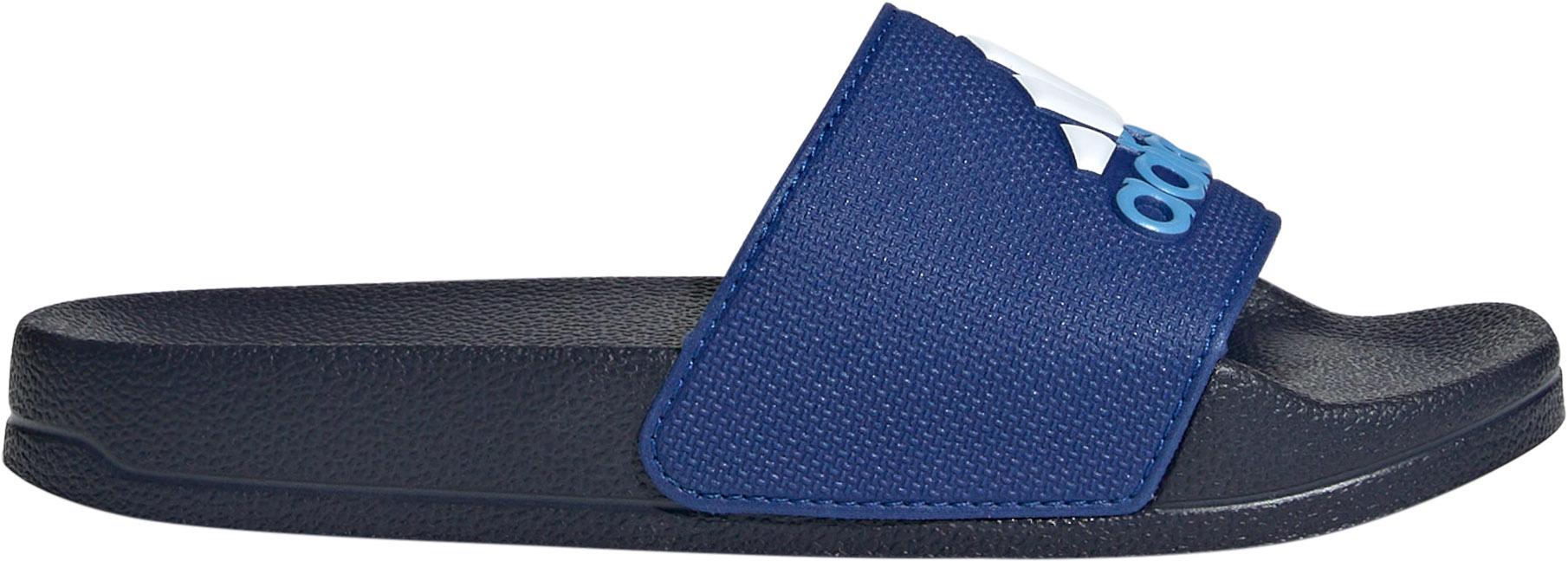 Badelatschen im Colourblock-Design; breiter Riemen aus Synthetik; weiches CloudFoam-Fußbett; rutschfeste EVA-Außensohle; schnelltrocknend; normale Schuhweite.