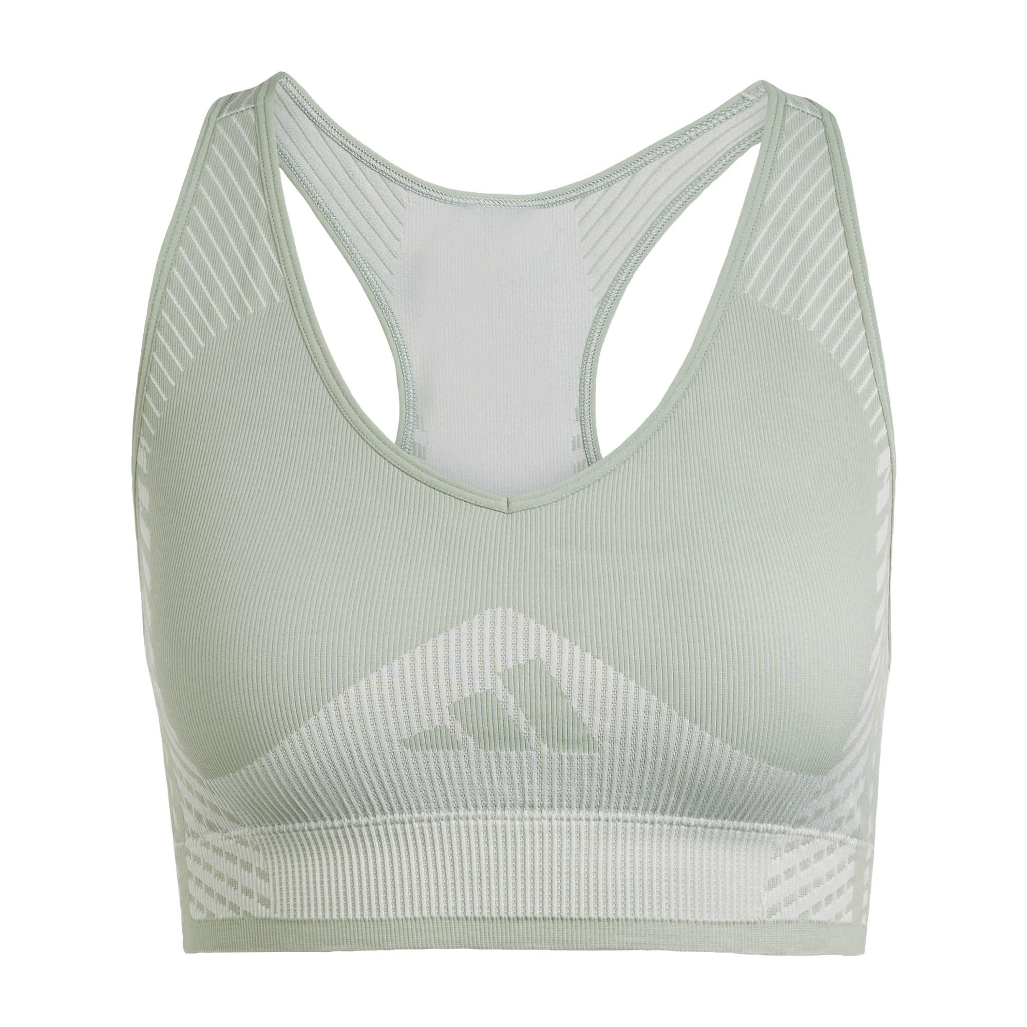 Dieser adidas Sport-BH ist ideal für Yoga, Pilates und andere Workouts mit niedriger Intensität. Das nahtlose Design sorgt für ablenkungsfreien Komfort, während die klassischen Träger den Druck auf die Schultern reduzieren und gleichzeitig bei Umkehrhaltungen und anderen intensiven Übungen Halt geben. CLIMACOOL leitet Feuchtigkeit von der Haut ab und sorgt für ein kühles und trockenes Tragegefühl – keine Ablenkung, nur Performance.Dieses Produkt ist mit mindestens 70 % recycelten Materialien hergestellt. Die Wiederverwendung bereits vorhandener Materialien hilft uns dabei, Müll zu reduzieren, unsere Abhängigkeit von nicht erneuerbaren Ressourcen einzuschränken und den CO2-Fußabdruck unserer Produkte zu verringern.CLIMACOOL Materialien ermöglichen ein schnelles und effizientes Feuchtigkeitsmanagement. Dank schnell trocknender Fasern fühlst du dich angenehm frisch.