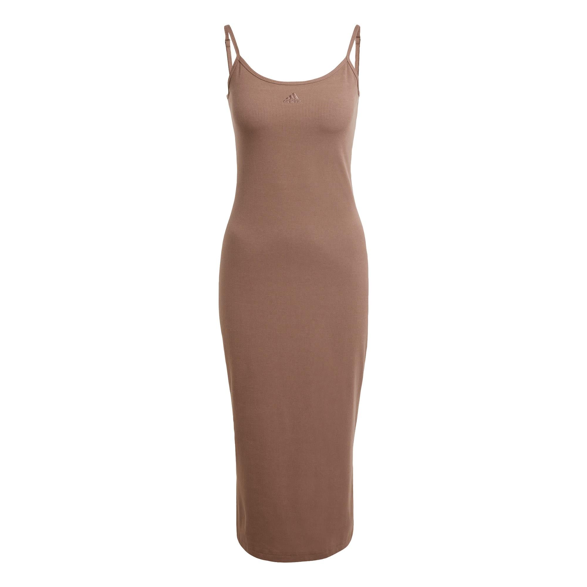 Mit diesem adidas Midi-Kleid hast du es bequem und siehst dabei auch noch stylish aus. Das gerippte, stretchige Material umschließt deine Silhouette passgenau und fühlt sich angenehm weich an. Dank der verstellbaren Träger kannst du die Passform individuell anpassen. Die Seitenschlitze sorgen außerdem für ein Plus an Komfort und Atmungsaktivität, egal wohin dein Tag dich führt. Kombiniert mit einer Jeansjacke oder einem lässigen Hemd wird ein stylisher Look draus.
