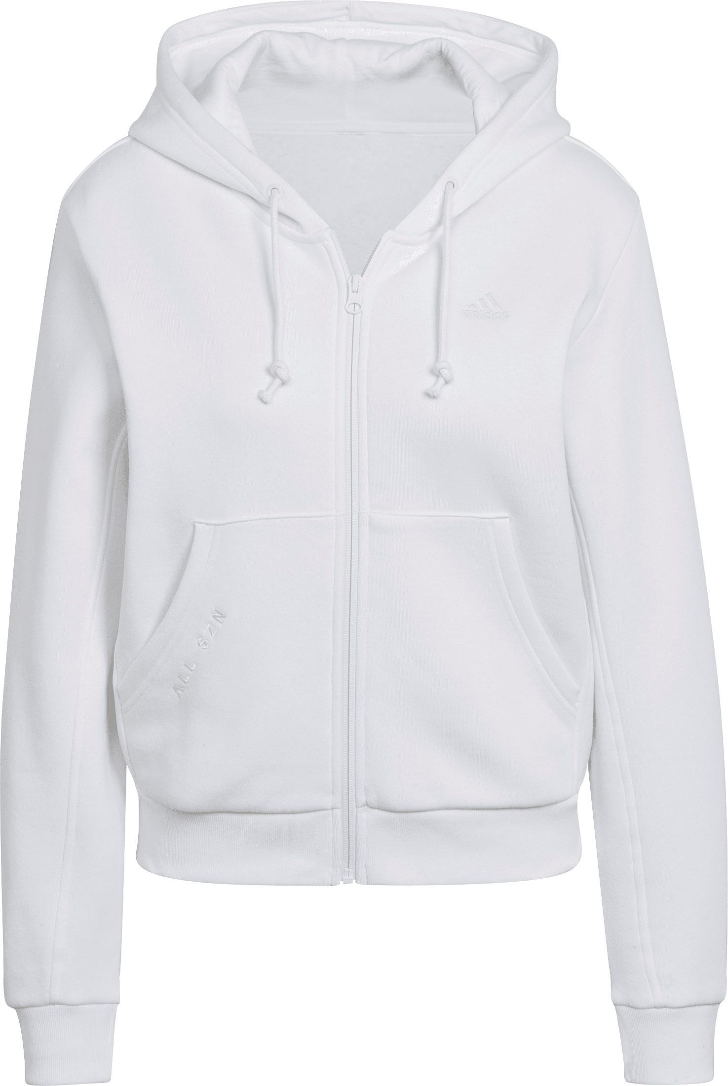 Kurze Sweatjacke mit durchgehendem Reißverschluss und 2 Taschen; Kapuze mit Kordelzug; Rippbündchen an den Abschlüssen; Material 80% Baumwolle, 20% Polyester (recycelt).