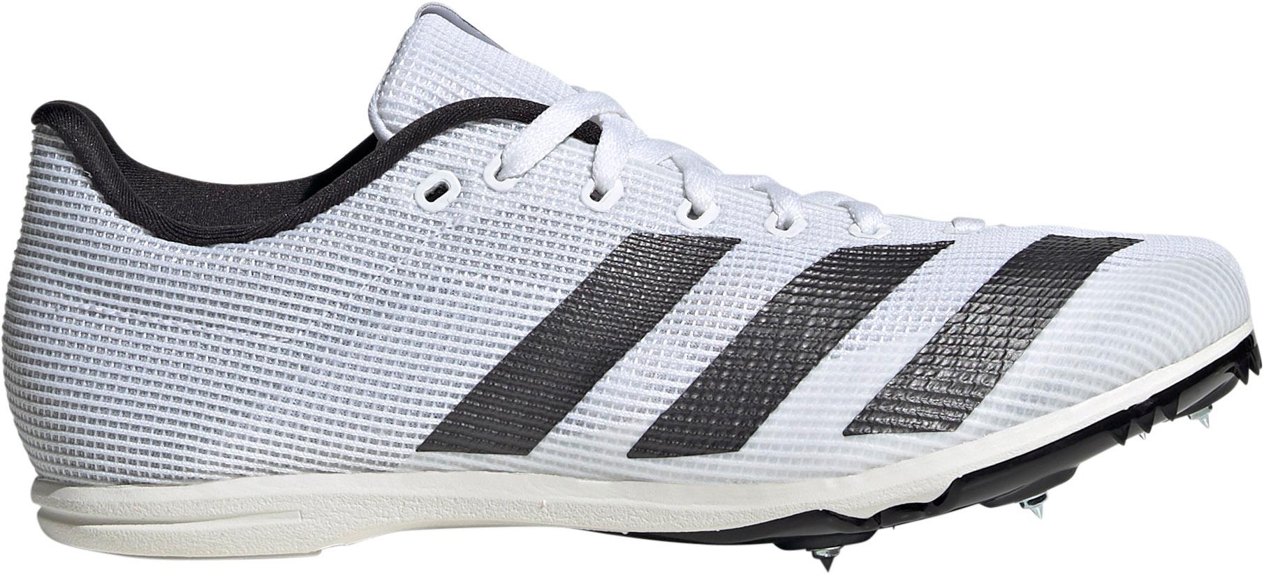 Multifunktionale Leichtathletik-Schuhe für Kinder und Jugendliche; Obermaterial aus Textil; Logodetail und 3-Streifen an den Seiten; Schnürung bis zum Vorfuß für optimale Stabilität und Passform; robuste Außensohle aus Synthetik; Vorrichtung, um Spikes anzubringen; mit Recyclingmaterial hergestellt.