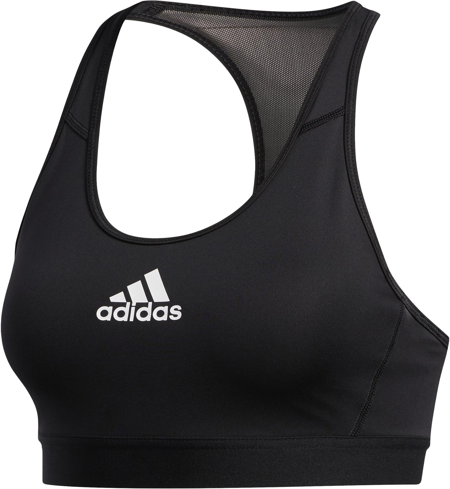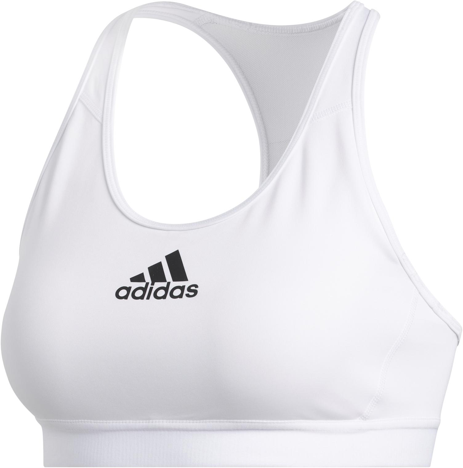 adidas ALPHASKIN. Sport-BH für mittleren Halt mit feuchtigkeitsregulierender Aeroready®-Technologie für ein trockenes Tragegefühl und atmungsaktiven Mesh-Einsätzen; elastisches Unterbrustband; Ringerrücken; Markenschriftzug; Material 89% Polyester, 11% Elastan.