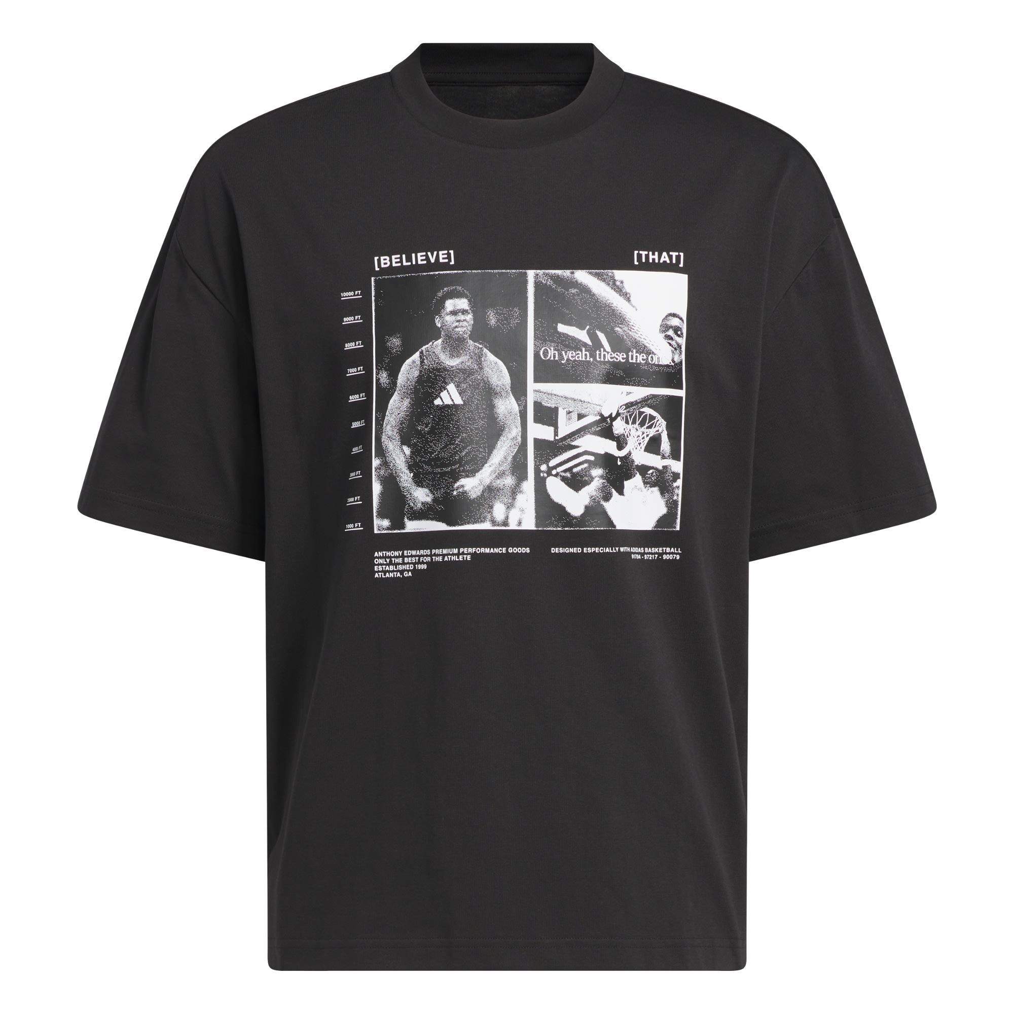 Mit diesem Anthony Edwards Shirt von adidas wird sofort klar, welchen aufstrebenden Star du anfeuerst. Dieses Shirt mit Grafik feiert den dynamischen Sport und die elektrisierende Energie eines der unterhaltsamsten Spieler der Basketballwelt. Das Shirt aus weichem, atmungsaktivem Single Jersey ist an den Schultern großzügig geschnitten, damit du dich auf und neben dem Platz frei bewegen kannst.