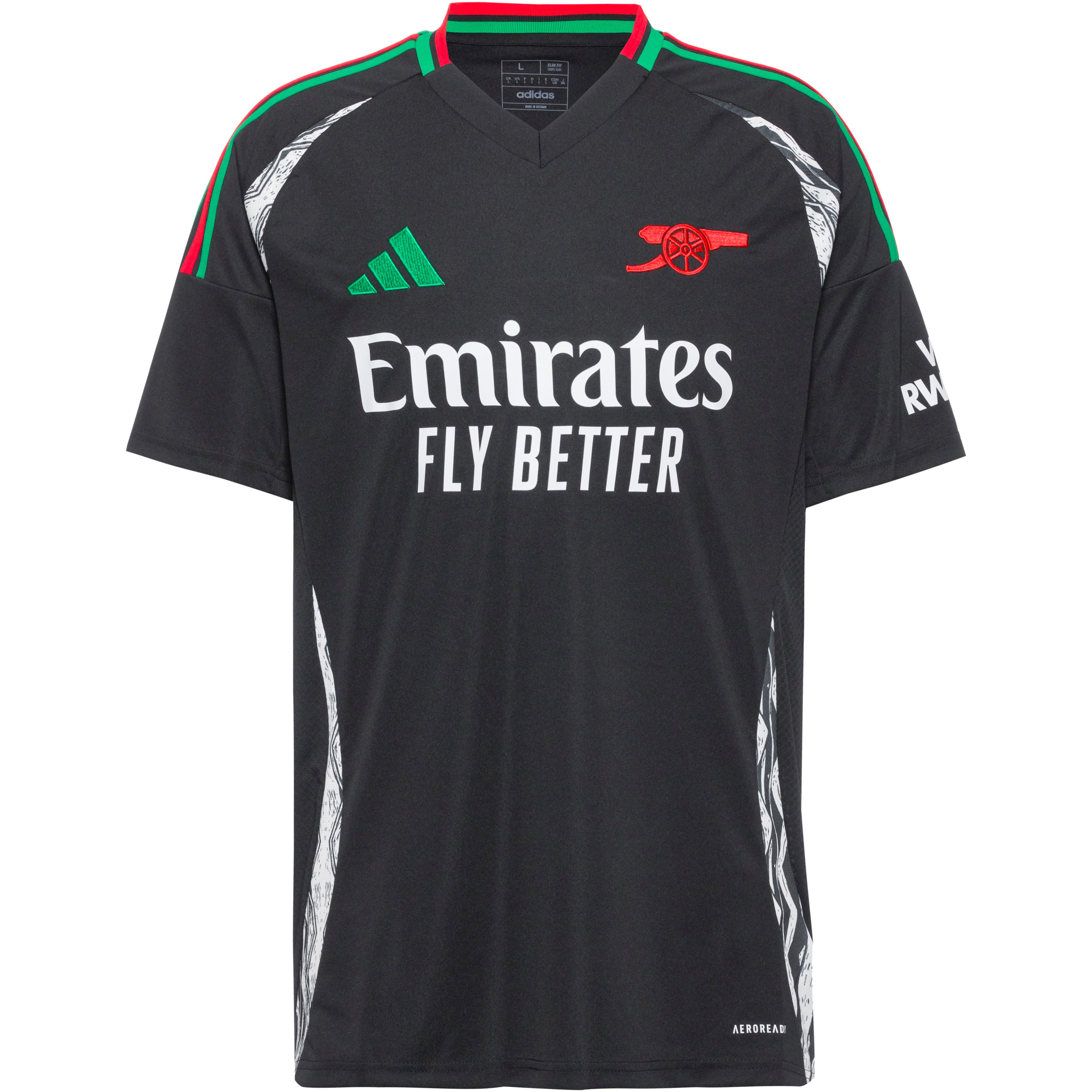 Fußballtrikot im Auswärts-Design des Arsenal Londons, für die Saison 2024/ 25; feuchtigkeitsregulierend, atmungsaktiv und schnelltrocknend dank AERO.RDY-Technologie; V-Ausschnitt; die Raglanärmel sorgen für optimale Bewegungsfreiheit; die strategisch platzierten Mesh-Einsätze sorgen für angenehme Ventilation; Marken-, Sponsoren- und Vereinsdetails auf der Front; Material 100% Polyester (recycelt).