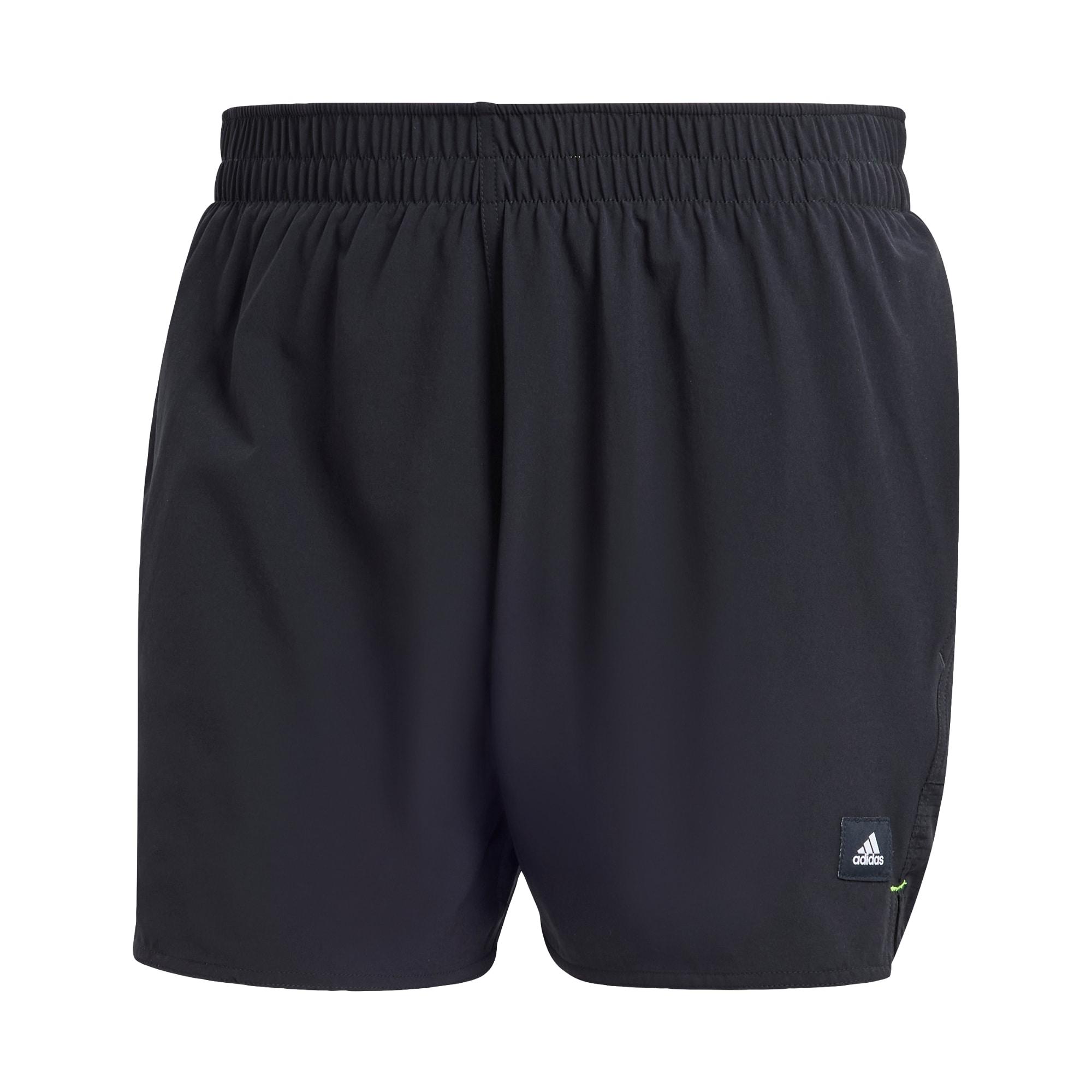 Kurze Badehose mit elastischem Gummibund; seitliche Eingrifftaschen; Gesäßtasche mit Reißverschluss; kurze Seitenschlitze; enthält Recyclingmaterial; Material 87% Polyester, 13% Elastan.