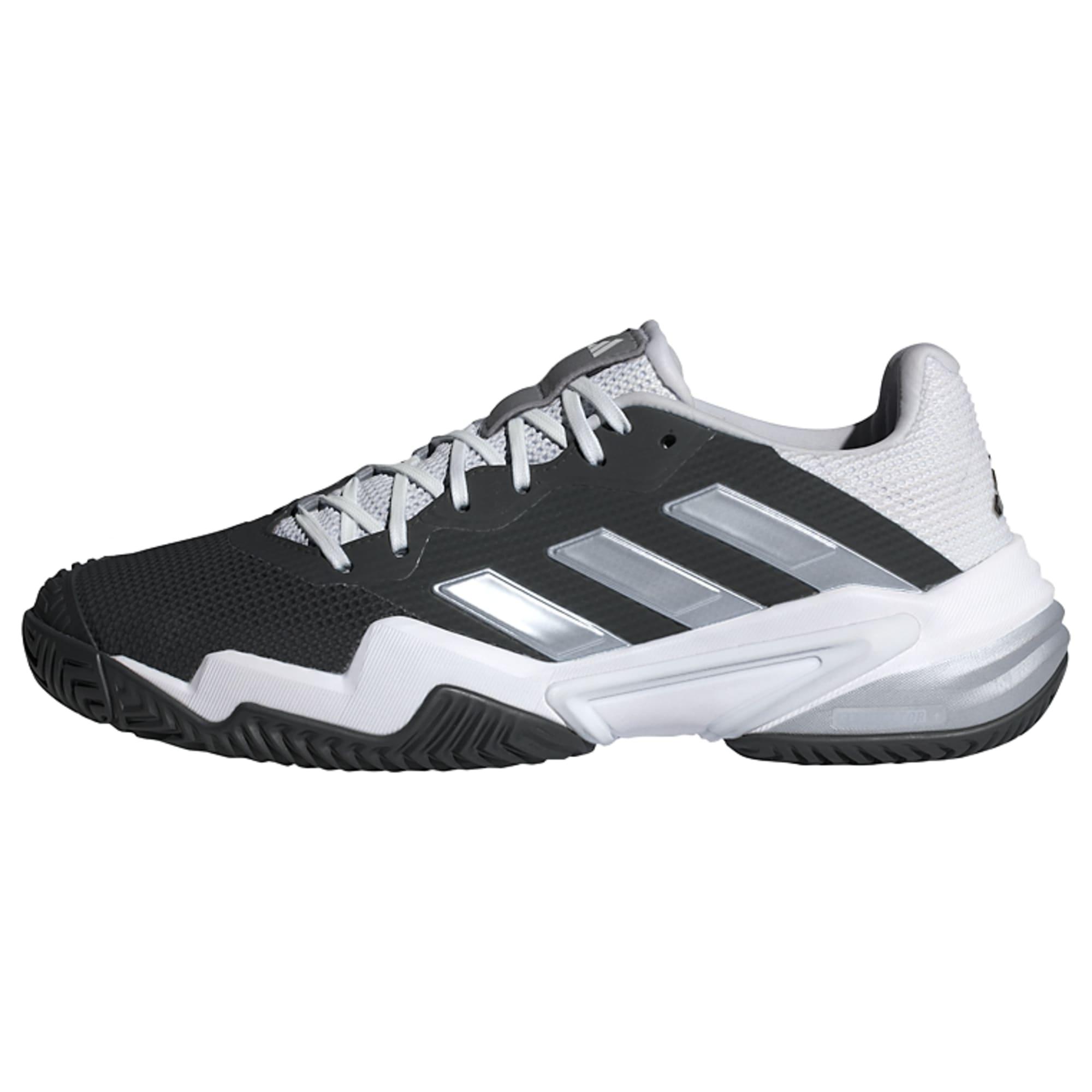 Mit diesem adidas Barricade Tennisschuh überzeugst du auf dem Platz mit schlagfertiger Performance. Das Torsion System garantiert optimierte Bewegungsfreiheit von Rück- zu Vorfuß und die asymmetrische Schnürung garantiert einen sicheren Sitz und Stabilität bei schnellen Richtungswechseln und Slides. Dank der REPETITOR Zwischensohle profitierst du nicht nur von zuverlässigem Support, sondern auch von dynamischem Abrollverhalten. Außerdem passen sich die Geofit Sensepods der natürlichen Form deiner Ferse an und sorgen so bis zur letzten Spielminute für Halt und Komfort.Dieses Produkt ist mit mindestens 20 % recycelten Materialien hergestellt. Die Wiederverwendung bereits vorhandener Materialien hilft uns dabei, Müll zu reduzieren, unsere Abhängigkeit von nicht erneuerbaren Ressourcen einzuschränken und den CO2-Fußabdruck unserer Produkte zu verringern.