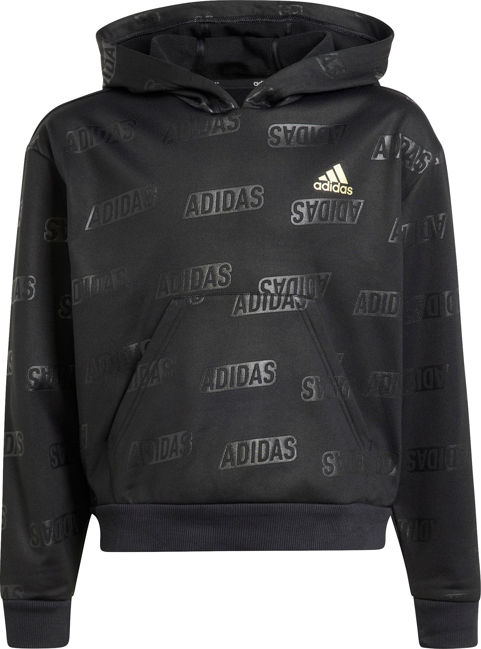 Kapuzenpullover mit Allover-Logoaufdruck; große Kängurutasche; Rippbündchen an Saum und Ärmeln; reguläre Passform; Material 100% Polyester (recycelt).