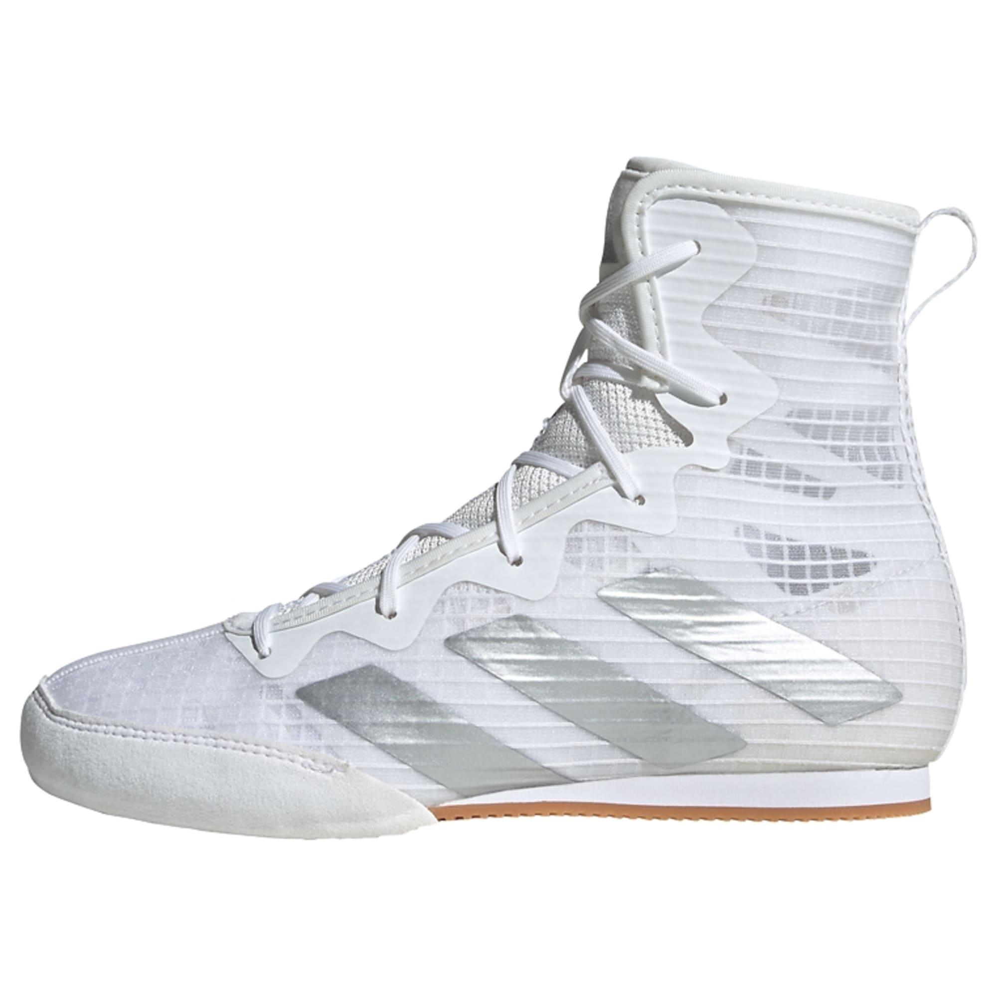 Wir präsentieren den Box Hog 4 Schuh, ein Must-have für junge Boxfans. Dieser Schuh wurde für junge Champions entwickelt und bieten eine Mischung aus Strapazierfähigkeit, Komfort und Performance.Er besticht durch eine multidirektionale Gummiaußensohle, die dir im Ring schnelle Beinarbeit und Beweglichkeit ermöglicht. Die gestanzte und keilförmige EVA-Zwischensohle sorgt für ein gepolstertes Gefühl unter den Füßen. Dadurch fühlt sich jeder Schritt leicht und reaktionsfreudig an. Dank der niedrigen Oberseite geht das An- und Ausziehen ganz schnell und die Kids können sich auf ihre Moves konzentrieren. Egal, ob beim Training oder im Wettkampf, dieser Schuh ist eine zuverlässiger Wahl für Nachwuchssportlerinnen und Nachwuchsportler, um ihr volles Potenzial auszuschöpfen.Durch das atmungsaktive Ripstop-Mesh bleiben ihre Füße auch bei intensiven Trainingseinheiten frisch und bequem. Die Verstärkung auf der Innenseite sorgt für extra Halt und Strapazierfähigkeit für Füße im Wachstum. Dieser Schuh verkörpert Innovation und Performance und ermöglicht es jungen Boxerinnen und Boxern, mit Komfort und Style zu trainieren. Mit adidas können sie den Ring mit Selbstvertrauen erobern.