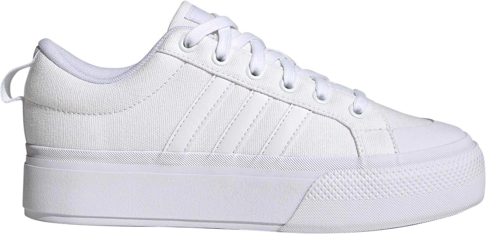 Sneaker mit leicht erhöhter Plaeausohle; niedriger Schaft; Canvas-Obermaterial mit synthetischen Logostreifen; Schnürung; Zuglasche an der Ferse; Textilfutter; dämpfende Zwischensohle; vulkanisierte Gummi-Außensohle mit leichtem Profil.