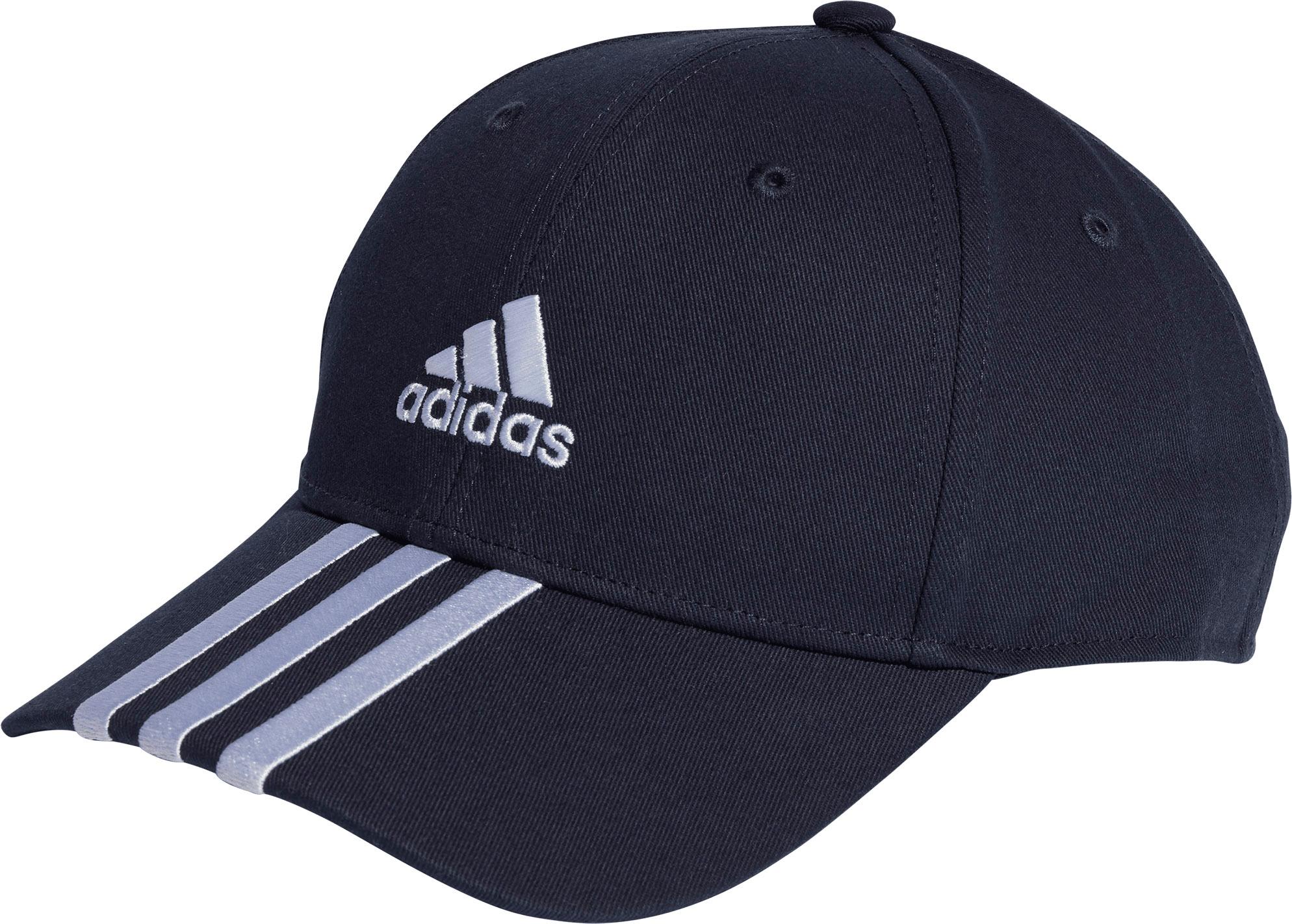 Klassische Baseball-Kappe aus weichem Material mit Schutz vor Sonneneinstrahlung; mit aufgesticktem 3-Streifen-Logo; verstellbarer Verschluss an der Rückseite; Krone und Schirm mittelstark vorgeformt; mit gepolstertem Schweißband; Löcher zur Belüftung; Material 100% Baumwolle.