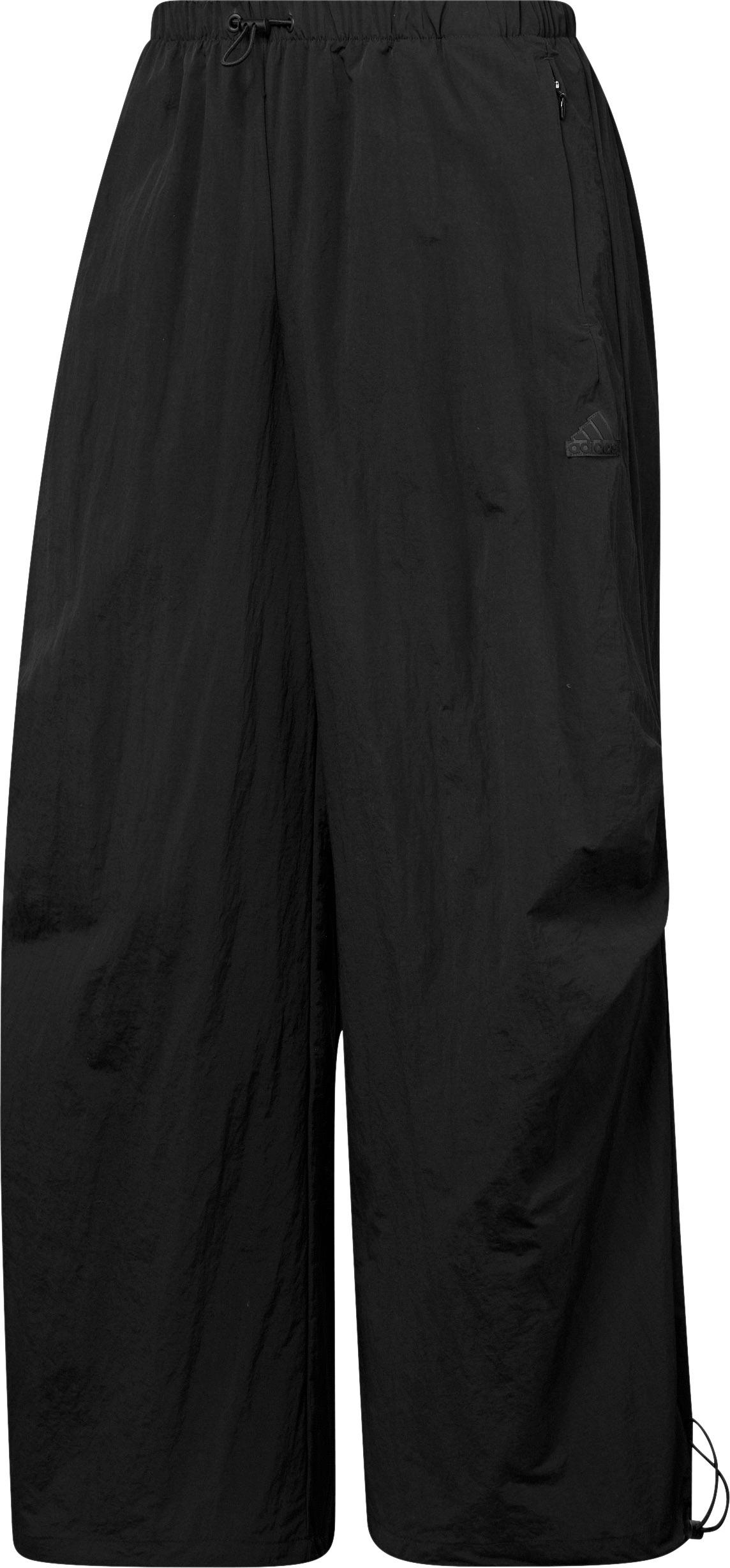 Lässige Fallschirmhose für Damen; Bund und Beinabschlüsse mit elastischem, verstellbarem Tunnelzug; 2 Seitentaschen mit Reißverschluss; Logo-Applikation am Bein; Material 100% Polyamid (recycelt).