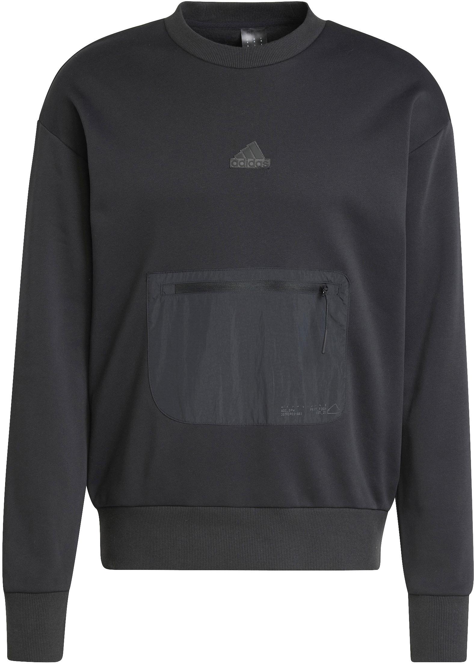 Sweatshirt mit aufgesetzter Reißverschluss-Fronttasche; Rundhalsausschnitt; Logodetail auf der Brust; lässige Passform mit überschnittenen Schultern; Reißverschlusstasche an der rechten Seite; Rippbündchen an Ausschnitt, Ärmeln und Saum; Material 70% Baumwolle, 30% Polyester (recycelt).