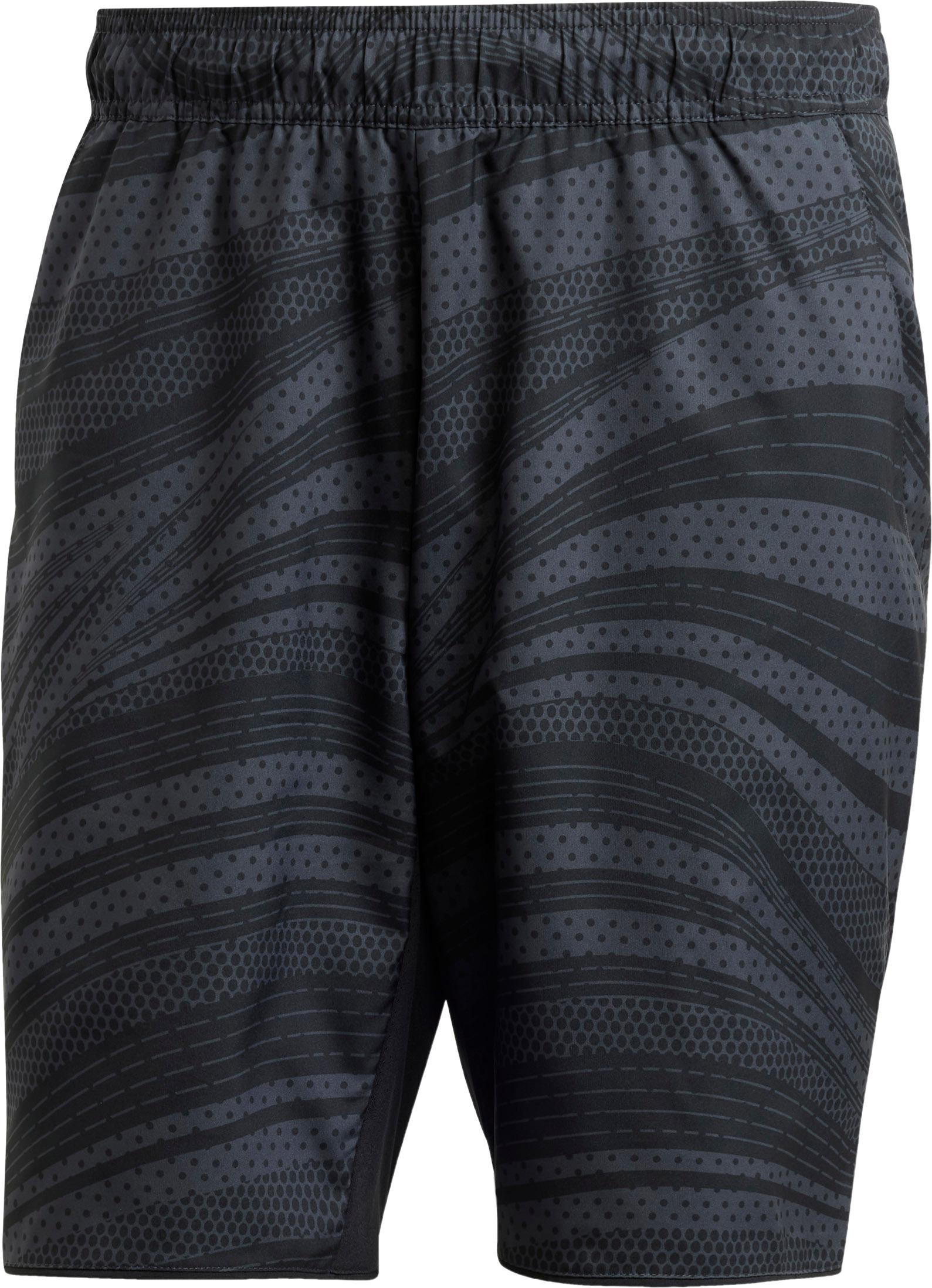 Tennisshorts mit Allover-Print; die climacool®-Funktion sorgt für ein kühles und trockenes Tragegefühl; feuchtigkeitsregulierend, schnelltrocknend und atmungsaktiv; elastischer Bund mit Kordelzug auf der Innenseite; 2 offene Seitentaschen; seitlich geschlitzter Saum und Zwickel für maximale Bewegungsfreiheit; Material 100% Polyester (recycelt).