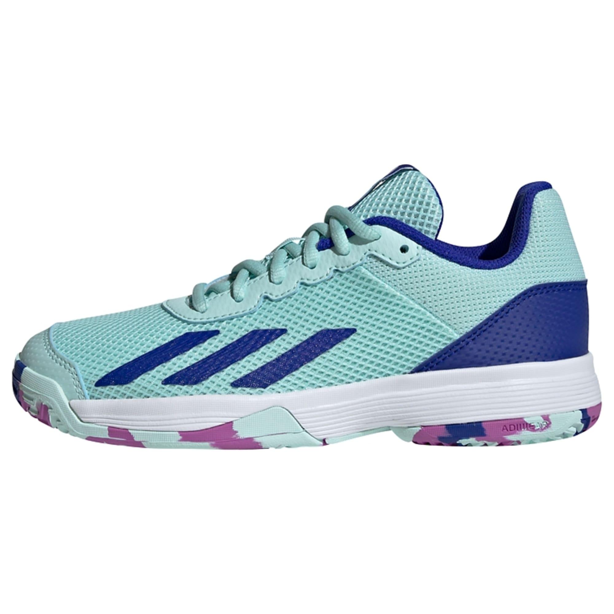 Mit diesem Schuh bist du auf dem Court schnell unterwegs. Der adidas Courtflash für Kinder ist leicht und hat ein Obermaterial aus atmungsaktivem Mesh. Damit ist er perfekt für schnelle Tennismatches geeignet. Außerdem ermöglicht die griffige Adiwear Außensohle blitzschnelle Beschleunigung auf unterschiedlichem Untergrund. Außerdem bietet das abriebfeste Adituff Material ein Plus an Strapazierfähigkeit – so richten Slides weniger Verschleiß an.Mit einem Recycling-Anteil von mindestens 50 % im Obermaterial ist dieses Produkt nur eine unserer Lösungen im Kampf gegen Plastikmüll. Dieses Produkt ist nur eine unserer Lösungen im Kampf gegen Plastikmüll.