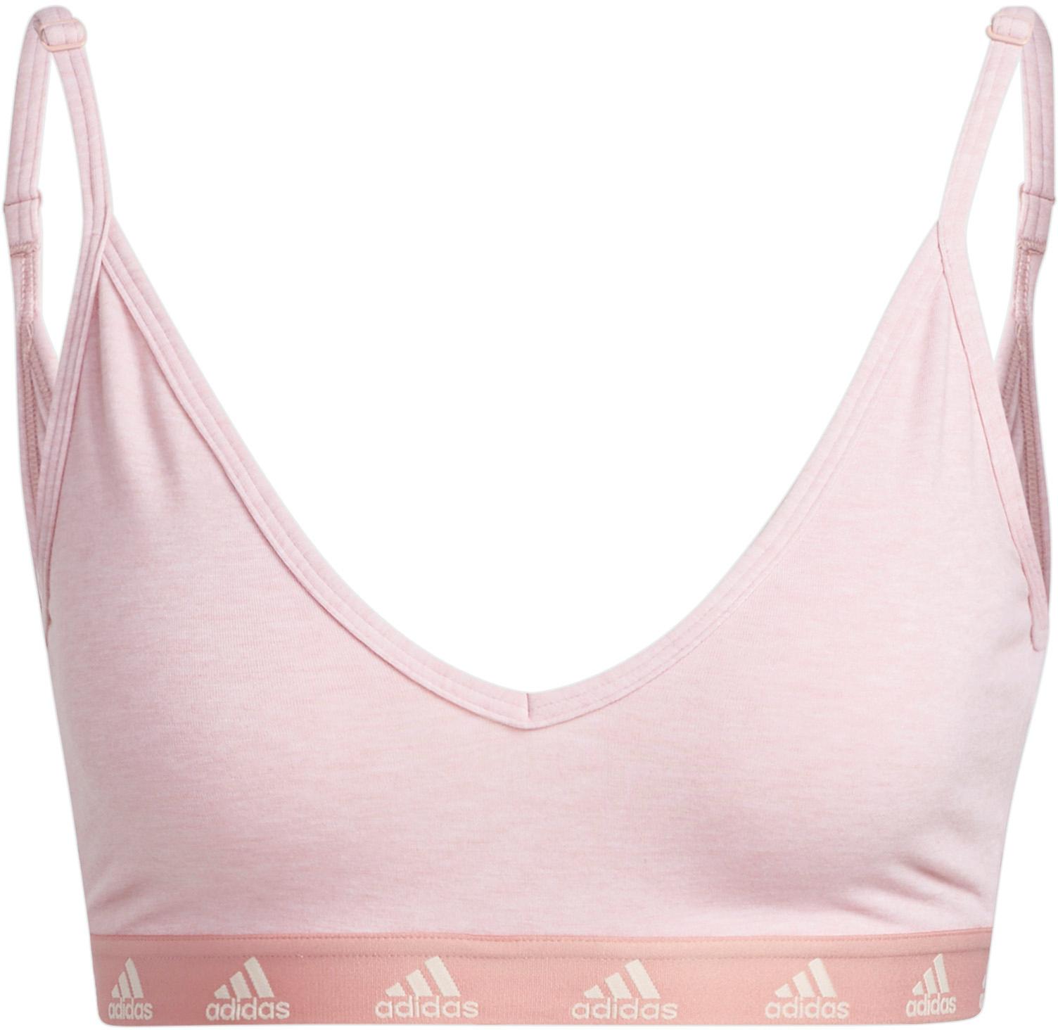Sport-BH mit tiefen V-Ausschnitt und verstellbaren Spaghettiträgern; elastisches Unterbrustband mit Labelprint; Material 74% Polyester (recycelt), 19% Baumwolle, 7% Elastan.