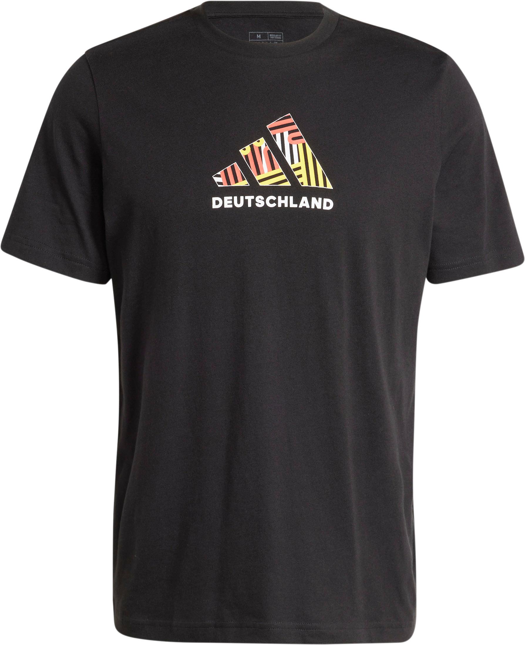 T-Shirt für Fans des deutschen Fußballteams; Logografik auf der Vorderseite und großer Print in Nationalfarben auf dem Rücken; Rundhalsausschnitt; normale Passform; Material 100% Baumwolle.