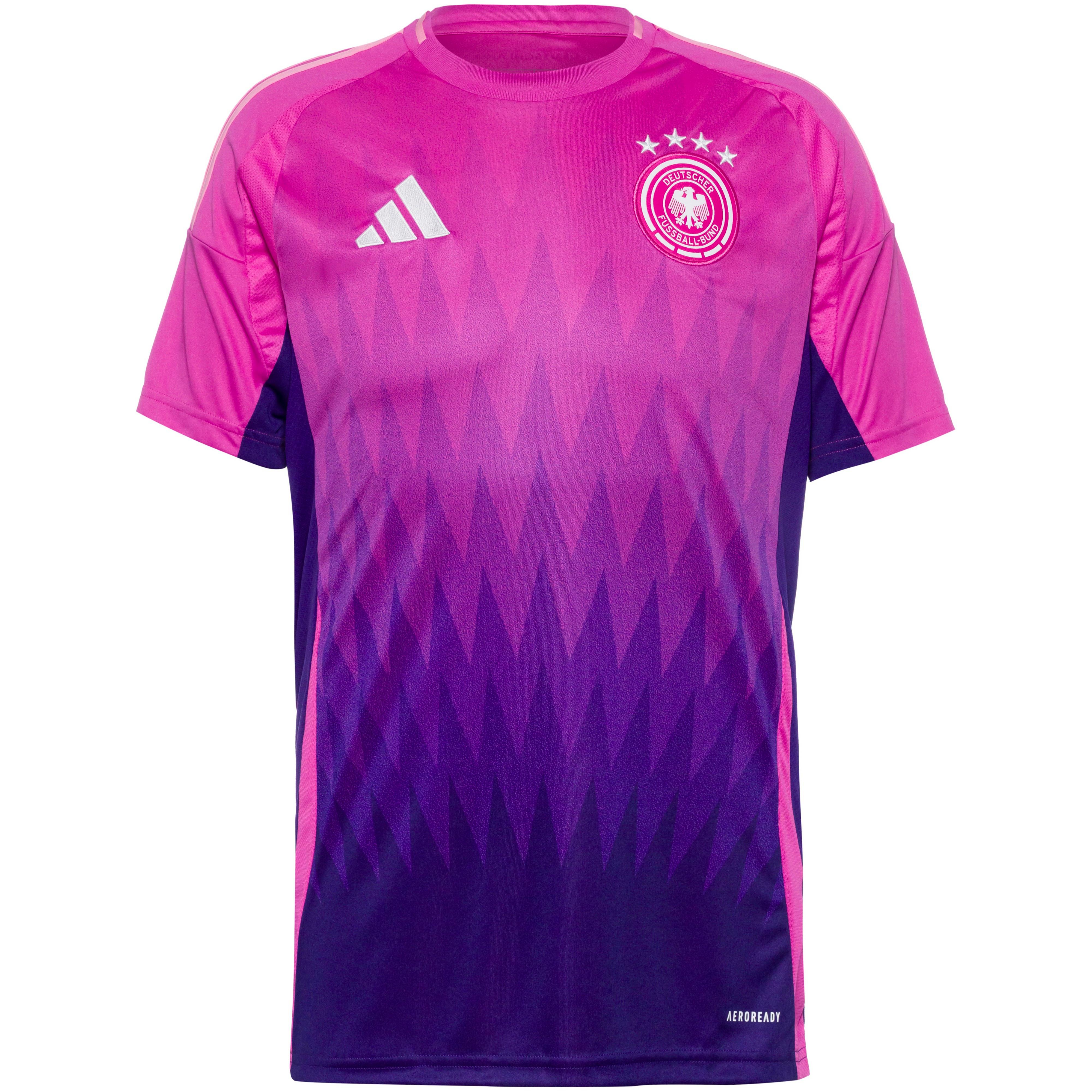 Deutschlandtrikot zur EM 2024 (Auswärtsspiel) mit DFB-Logo und Markendetails; atmungsaktiv, schnelltrocknend, feuchtigkeitsregulierend und strapazierfähig; Material 100% Polyester.