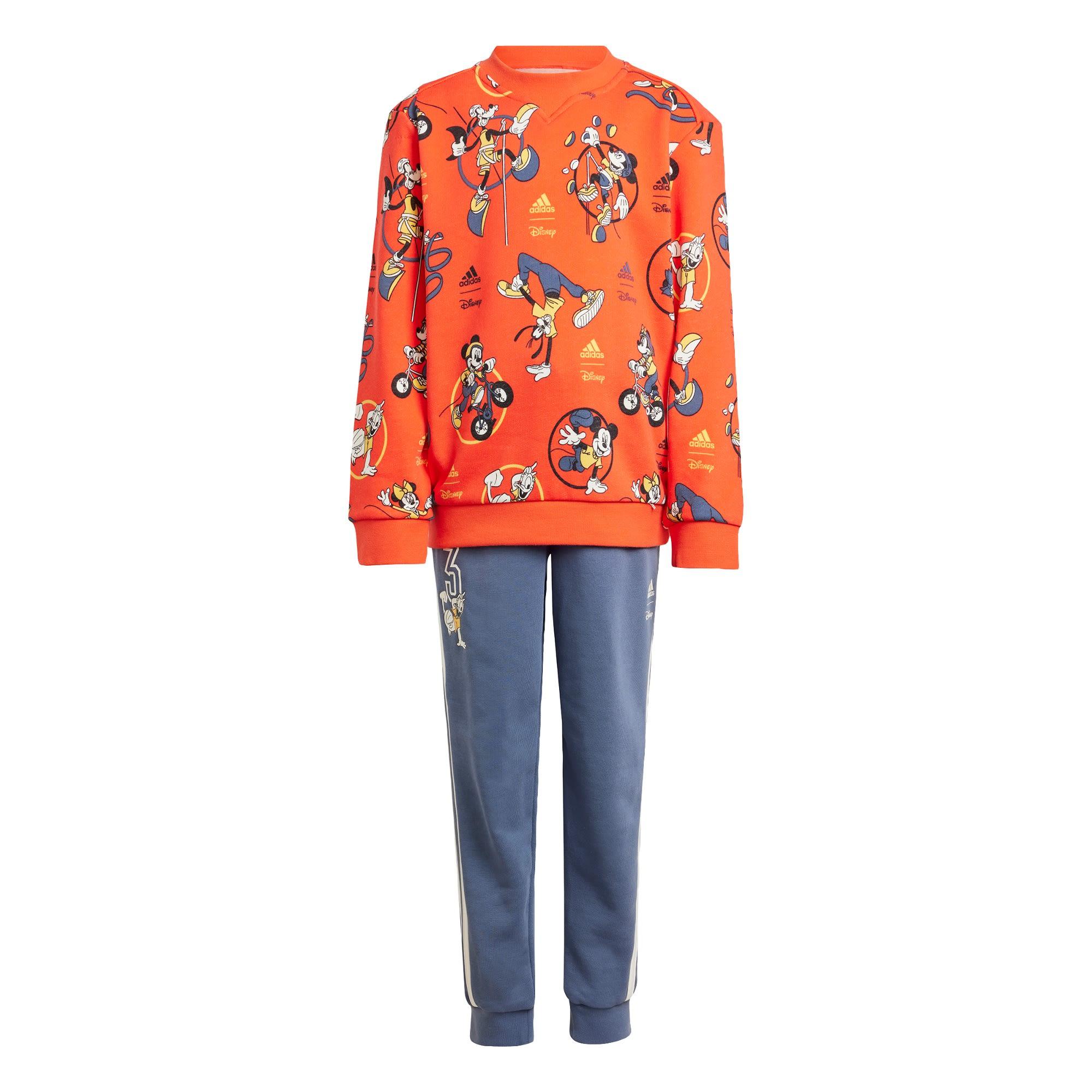 Mit Micky Maus und Co ist alles möglich. Dieser adidas Jogginganzug für Kinder feiert den Geist der Sommerspiele. Sein verspieltes Design zeigt die gesamte Crew bei ihren Lieblingssportarten. Während das weiche French-Terry-Material für ein kuscheliges Tragegefühl sorgt, garantieren die Rippdetails ein Plus an Wärme. Egal, ob dein kleiner Schatz auf dem Rad die Nachbarschaft erkundet oder auf dem Spielplatz seine Kletterkünste unter Beweis stellt – dieser Jogginganzug mit Micky Maus sorgt für einen Eyecatcher.Die Baumwolle für dieses Produkt stammt aus der Better Cotton Initiative. Better Cotton wird durch das Chain-of-Custody-Modell der Massenbilanz bezogen. Dadurch ist bei Better Cotton keine physische Rückverfolgung bis zum Endprodukt möglich.Hier erfährst du mehr: https://bettercotton.org/who-we-are/our-logo/
