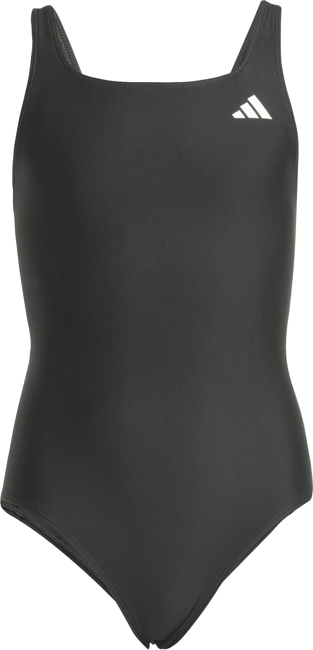 Badeanzug für Kinder und Teens; aus chlorresistentem und langlebigem Infinitex®-Material; elastisch; Carrée-Ausschnitt; Brustlogo; V-förmiges Rückendesign mit Cut-out; mittlerer Beinausschnitt; mit Recyclingmaterial hergestellt; Material 78% Polyamid (recycelt), 22% Elastan.