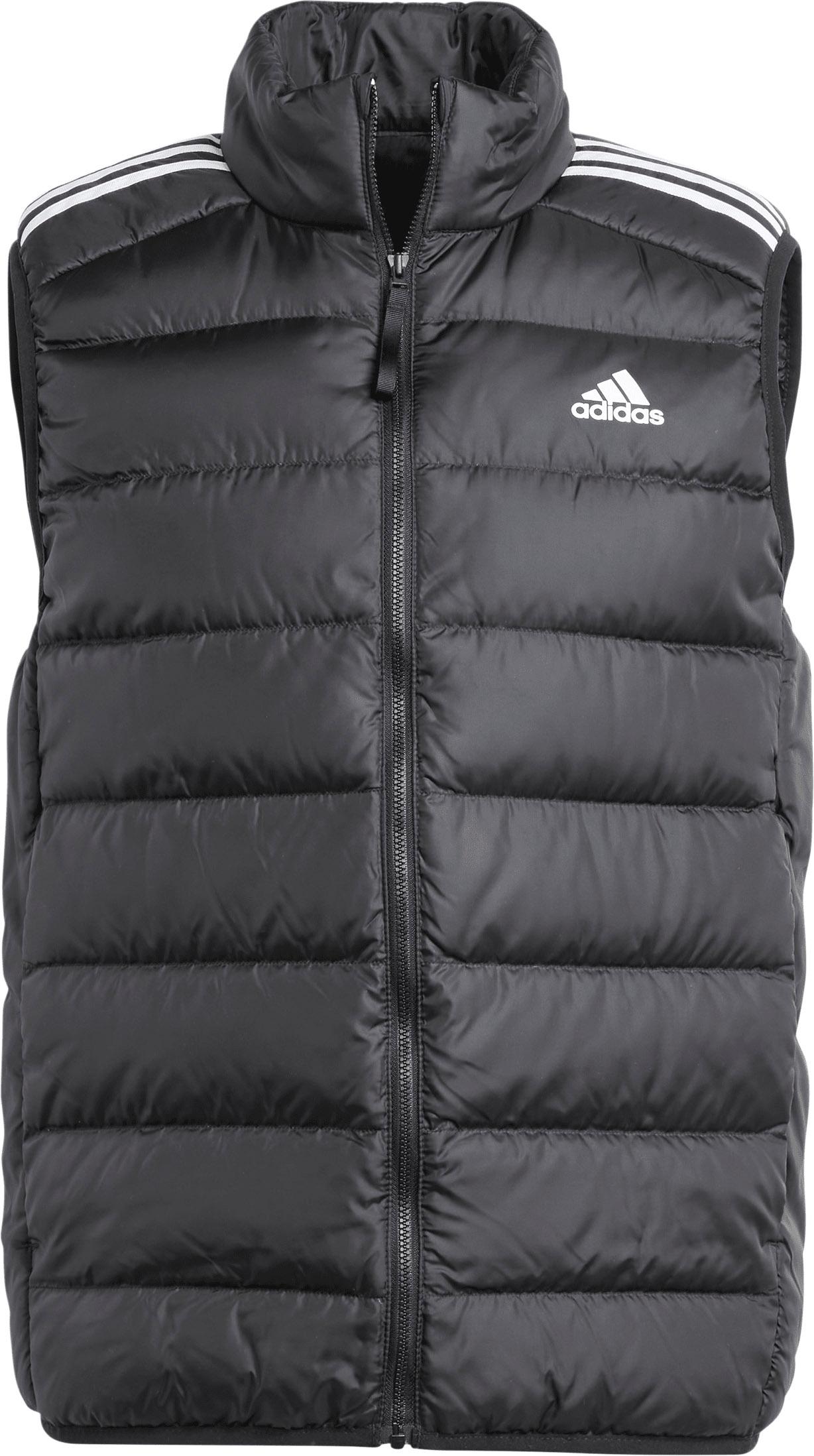Steppweste mit Stehkragen und durchgehendem Frontreißverschluss; markentypisches 3-Streifen-Design an der Schulter; 2 Seitentaschen; Labelprint auf Brusthöhe; Material 100% Polyester (recycelt).