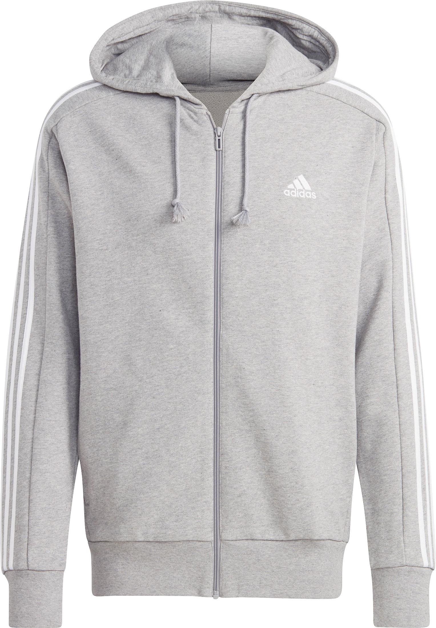 Lässige 3-Streifen-Sweatjacke, ideal für den Alltag und als Warmup; Kapuze mit Kordelzug; Eingrifftaschen; Abschlüsse aus dehnbarem Rippstrick; Badge of Sport-Brustlogo; weiche Innenseite; Material 100% Baumwolle.