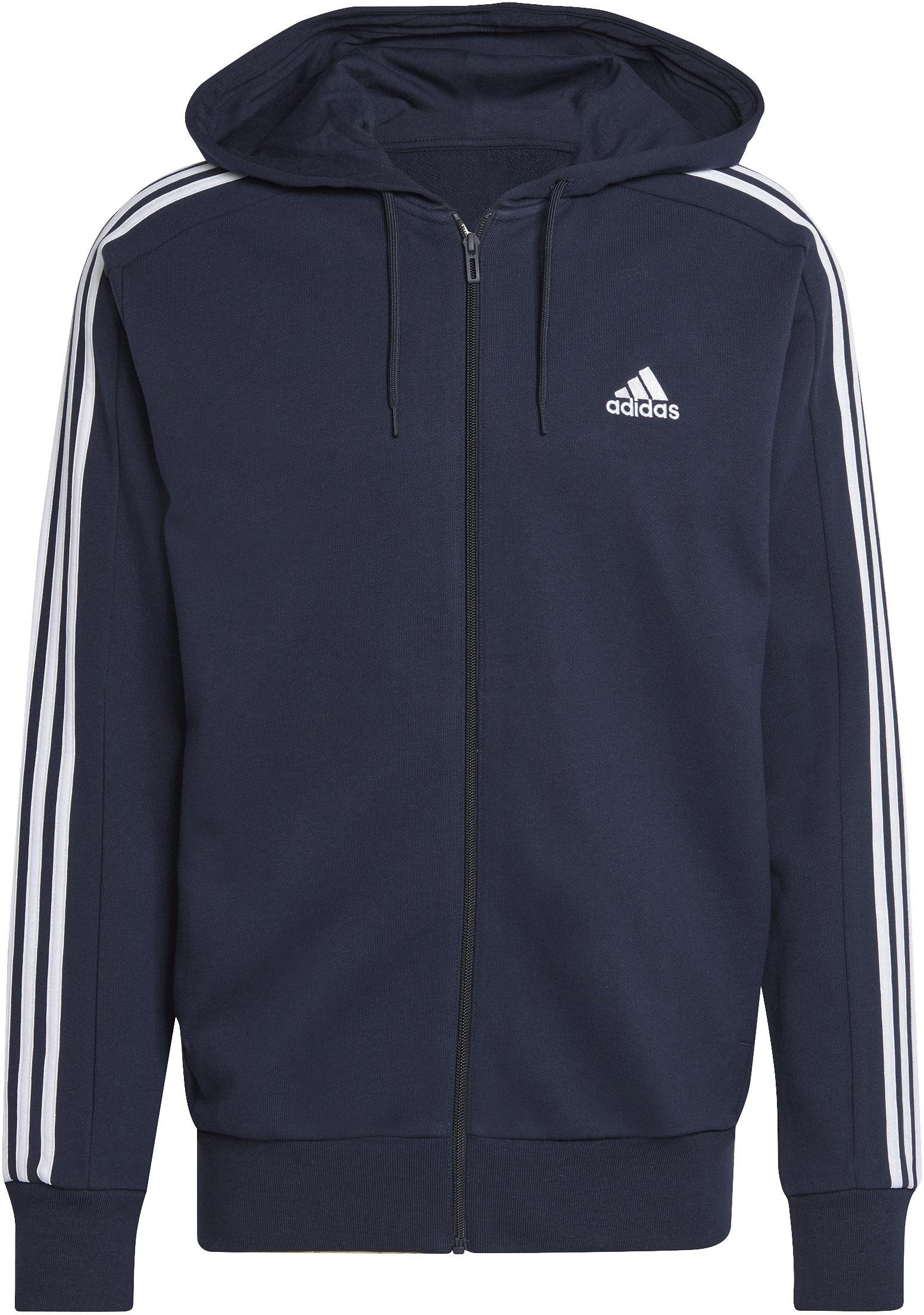 Lässige 3-Streifen-Sweatjacke, ideal für den Alltag und als Warmup; Kapuze mit Kordelzug; Eingrifftaschen; Abschlüsse aus dehnbarem Rippstrick; Badge of Sport-Brustlogo; weiche Innenseite; Material 100% Baumwolle.