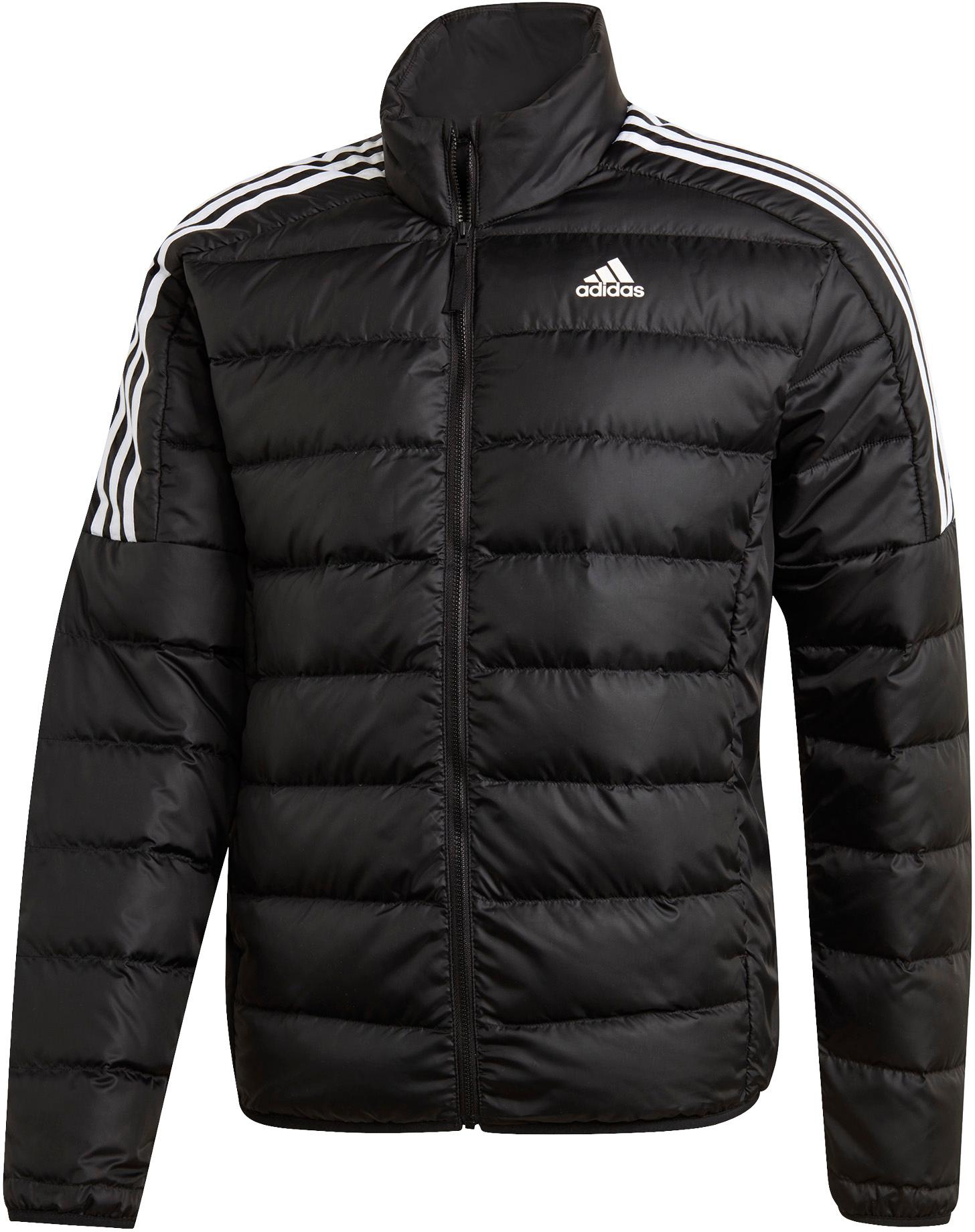 Gesteppte Jacke mit warmer Daunen-Isolierung; Stehkragen; durchgehender Frontreißverschluss; 2 Taschen 3-Streifen-Design auf den Schultern und Ärmeln; dauerhaft wasserabweisend; enthält nichttextile Teile tierischen Ursprungs; ohne PFC hergestellt; dieses Primegreen-Produkt wurde aus recycelten Materialien hergestellt, um Kunststoffabfälle zu vermeiden; Material 100% Polyester (recycelt), Wattierung 100% Polyester (davon 90% recycelt), Futter 100% Polyester (recycelt), Füllung 80% Daunen, 20% Federn.