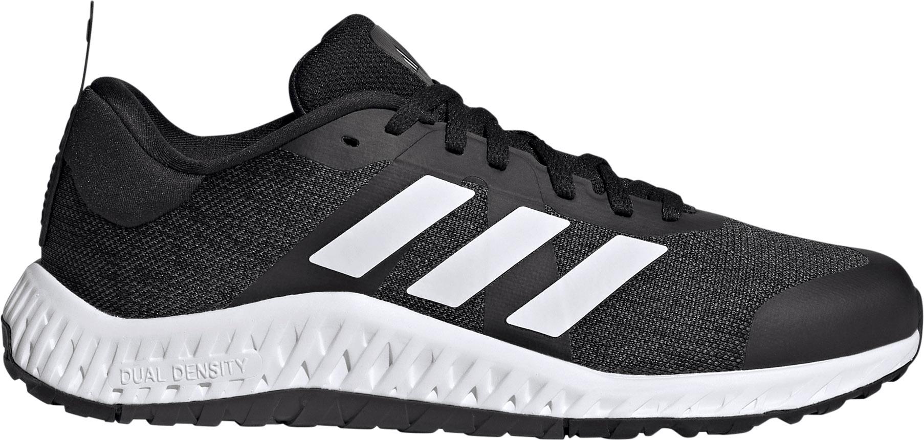 Stabile Fitnesschuhe aus weichem und atmungsaktivem Textil-Obermaterial für ein angenehmes Tragegefühl; klassische Schnürung und verstärkter Zehenbereich; Dual-Density-EVA-Zwischensohle; Mittelfuß-TPU-Verstärkung; multidirektionale Gummi-Außensohle; diverse Labeldetails; enthält Recyclingmaterial.