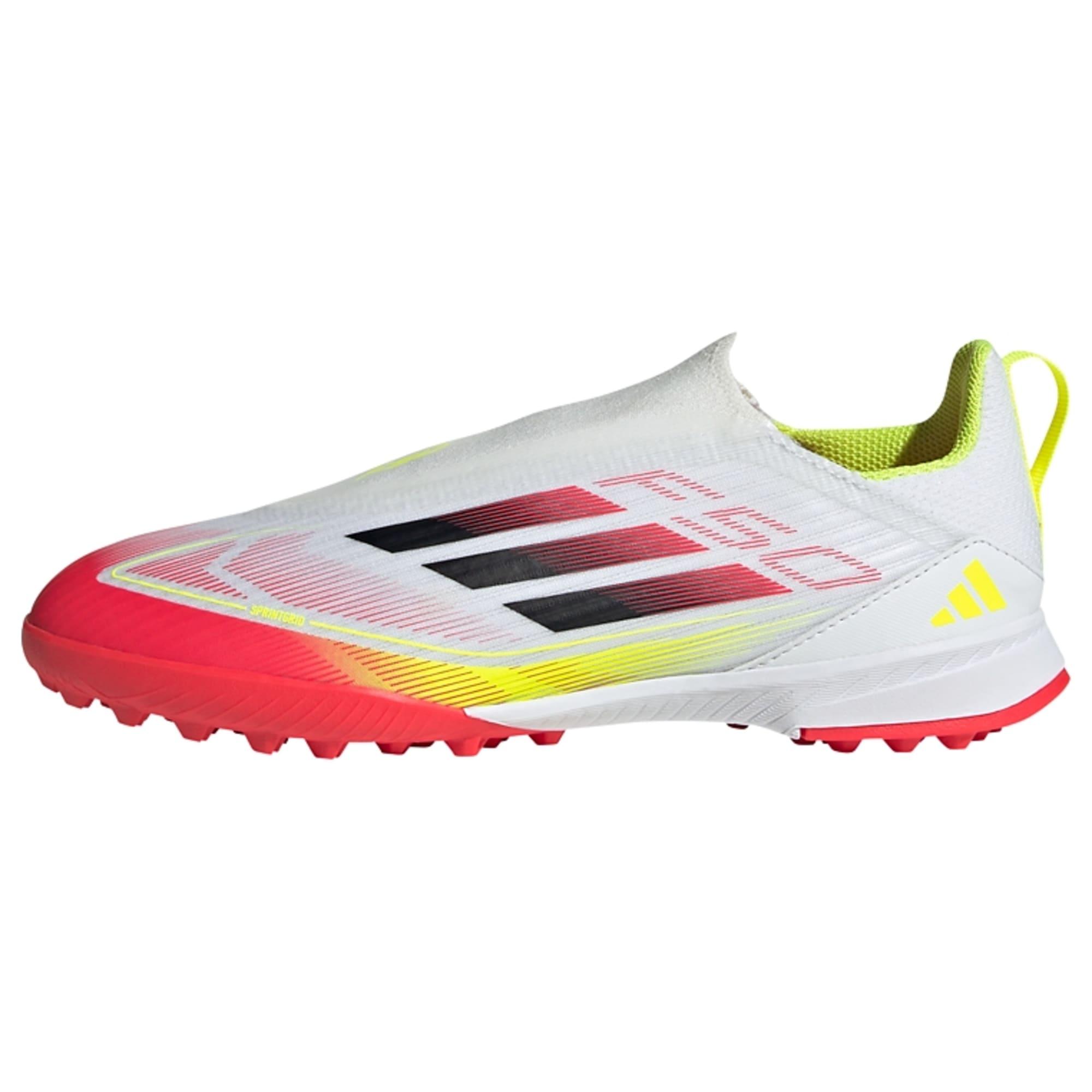Durch und durch auf Speed getunt – mit diesem leichten adidas F50 pushst du das gegnerische Team ans Limit. Sein schnürsenkelloses Design, hier in der Version für Kinder und Teens, bietet zusammen mit dem passgenauen Schaft eine cleane Schussfläche und einen sicheren Sitz am Fuß. Und das Fiberskin Obermaterial wird durch den Sprintgrid Print zum Eyecatcher. Die genoppte Gummiaußensohle in Kombination mit der weichen EVA-Zwischensohle garantiert dir zudem auf kurzem Kunstrasen, Hart- und Aschenplätzen maximale Traktion und Dämpfung.Dieses Produkt ist mit mindestens 20 % recycelten Materialien hergestellt. Die Wiederverwendung bereits vorhandener Materialien hilft uns dabei, Müll zu reduzieren, unsere Abhängigkeit von nicht erneuerbaren Ressourcen einzuschränken und den CO2-Fußabdruck unserer Produkte zu verringern.