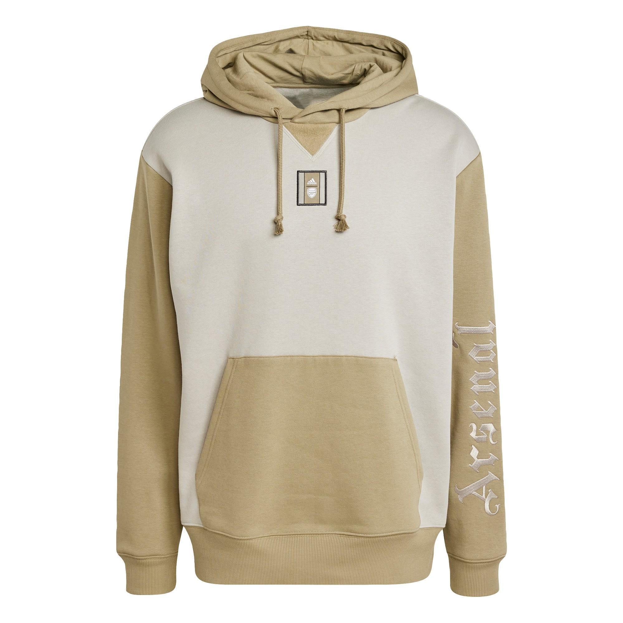 Perfekt, um auch an kalten Tagen deiner Fanliebe Ausdruck zu verleihen. Dieser adidas FC Arsenal Hoodie ist aus kuscheligem Baumwollmix mit angerauter Innenseite und hat eine geräumige Kapuze. Mit seinem lockeren Schnitt eignet er sich ideal für Lagenlooks – ob in der Freizeit oder am Spieltag in Kombi mit deinem Trikot. Der Vereinsname auf dem Ärmel und das kleine Vereinslogo auf der Brust machen den Statement-Look komplett.