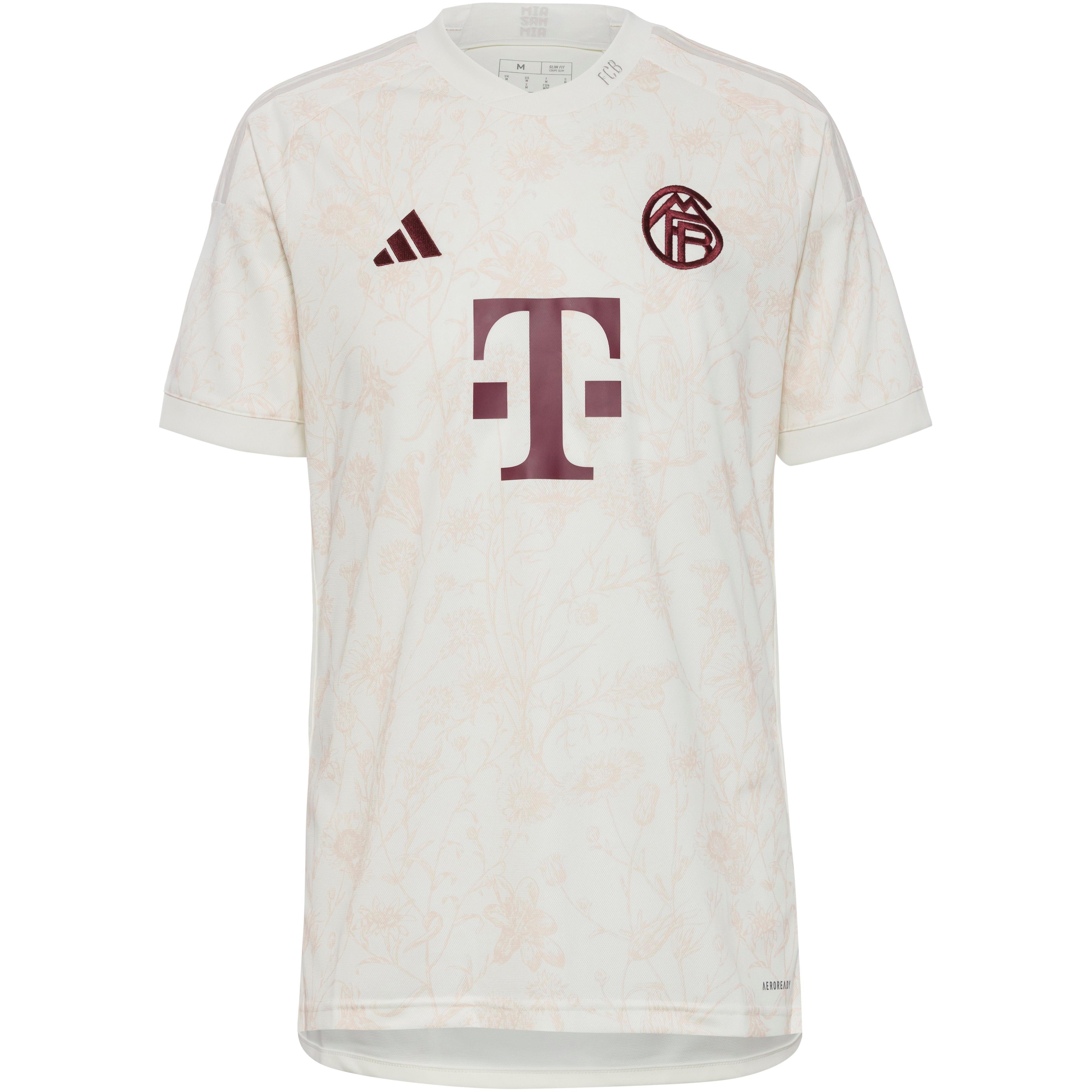 Ausweichtrikot des FC Bayern München, für die Saison 2023/24; mit atmungsaktiver, feuchtigkeitsregulierender und schnelltrocknender AERO.RDY-Technologie; V-Ausschnitt; ponsoren-, Vereins- und Markendetails auf der Front; die Raglanärmel sorgen für optimale Bewegungsfreiheit; Recyclingmaterial; Material 100% Polyester.
