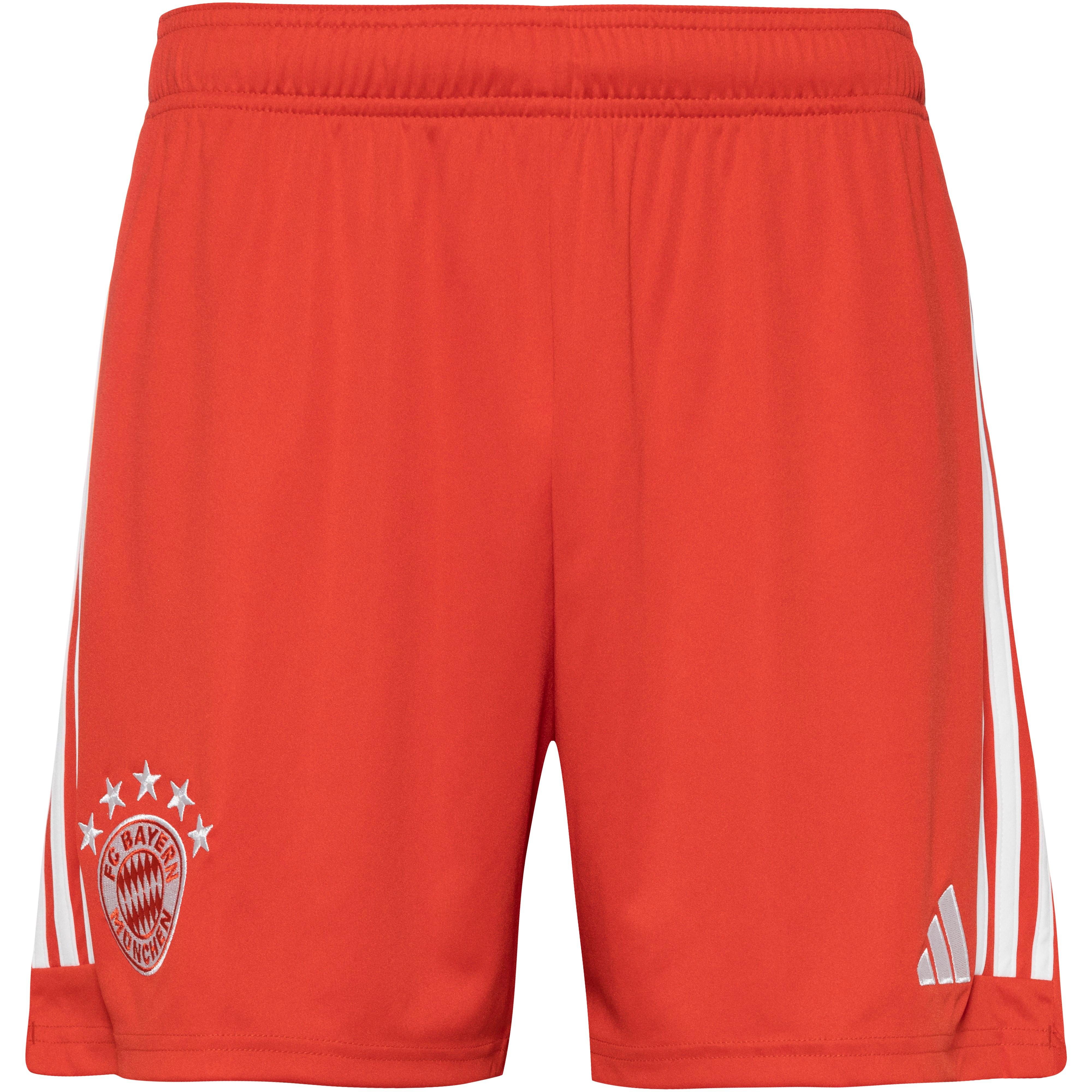 Heimspielshorts des FC Bayern Münchens, mit feuchtigkeitsregulierender und schnelltrocknender AERO.RDY-Technologie; atmungsaktiv; strapazierfähig; elastischer Bund mit innenliegendem Kordelzug; 3-Streifen-Design auf den Seiten; gesticktes Vereins-und Markendetail auf der Front; Seitenlänge: ca. 40 cm (Gr.: M); Material 100% Polyester (recycelt).