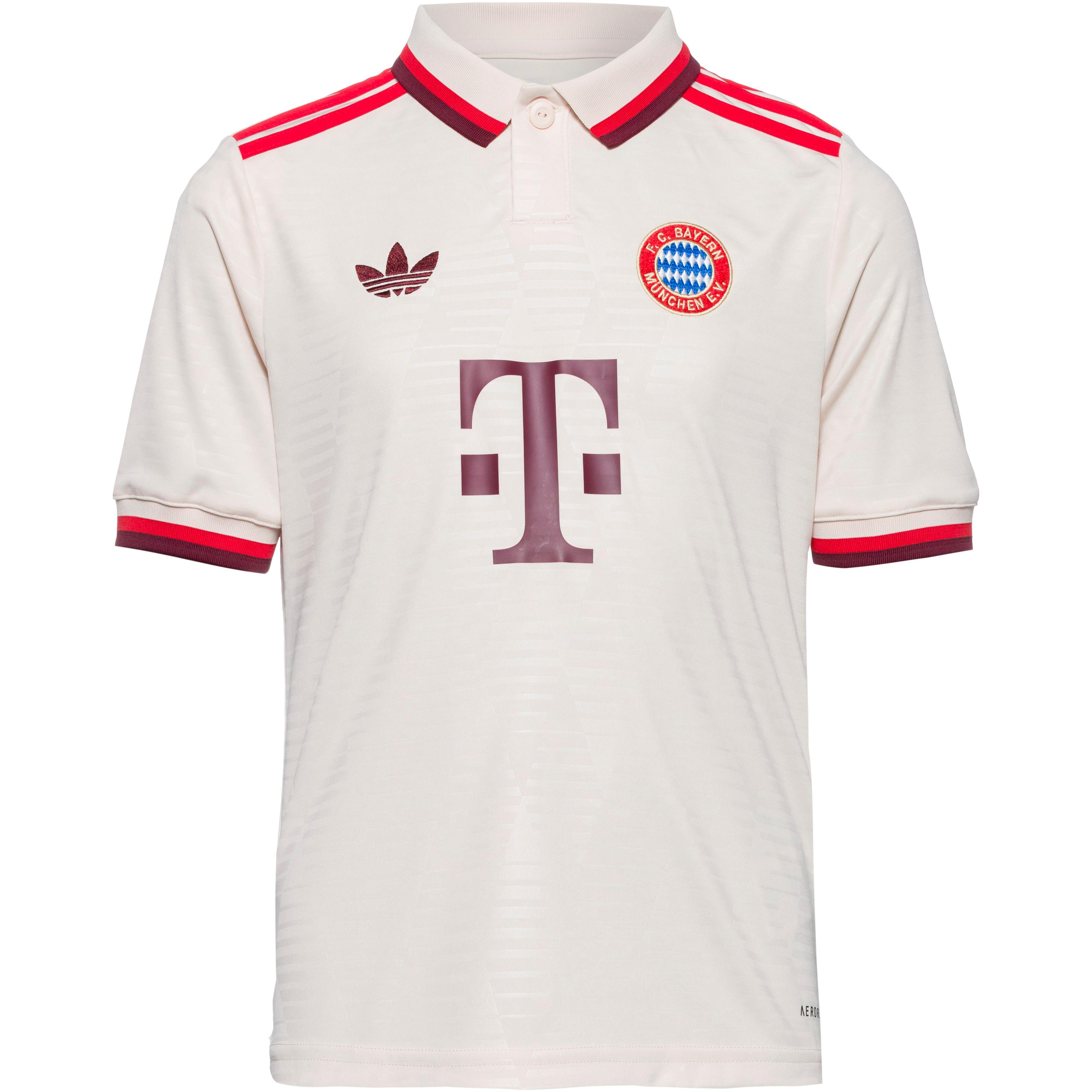 FC Bayern München Trikot für Kinder, im Ausweich-Design für die Saison 2024/25; feuchtigkeitsregulierend, atmungsaktiv und schnelltrocknend dank AERO.RDY-Technologie; Polokragen; Sponsoren-, Marken- und Vereinsdetails auf der Front; Material 100% Polyester (recycelt).