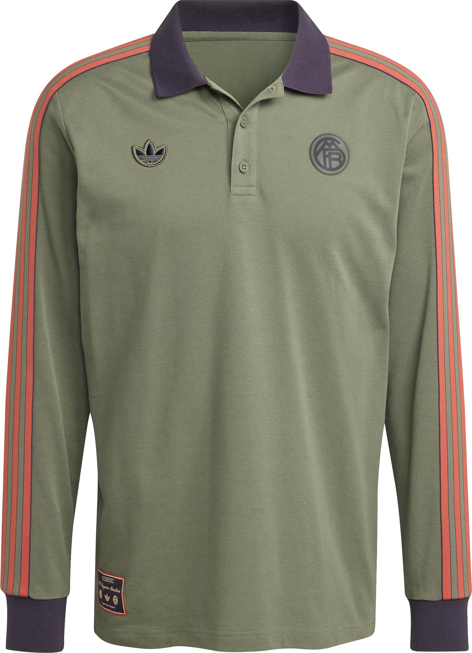 Langärmliges Poloshirt mit Vereinslogo des FC Bayern München und Labeldetails; Polokragen und kurze Knopfleiste; Rippbündchen an den Ärmelabschlüssen; Material 70% Baumwolle, 30% Polyester (recycelt).