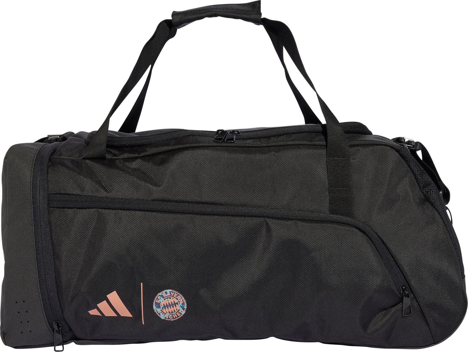 Sporttasche mit Vereinswappen des FC Bayern München und Logoprint; geräumiges Hauptfach mit Reißverschluss; belüftetes Schuhfach; Vordertasche mit Reißverschluss; 1 Tragegriff; verstellbarer und gepolsterter Schultergurt; beschichteter Boden für zusätzliche Haltbarkeit; Gewicht: ca. 600 g; Material 100% Polyester (recycelt).