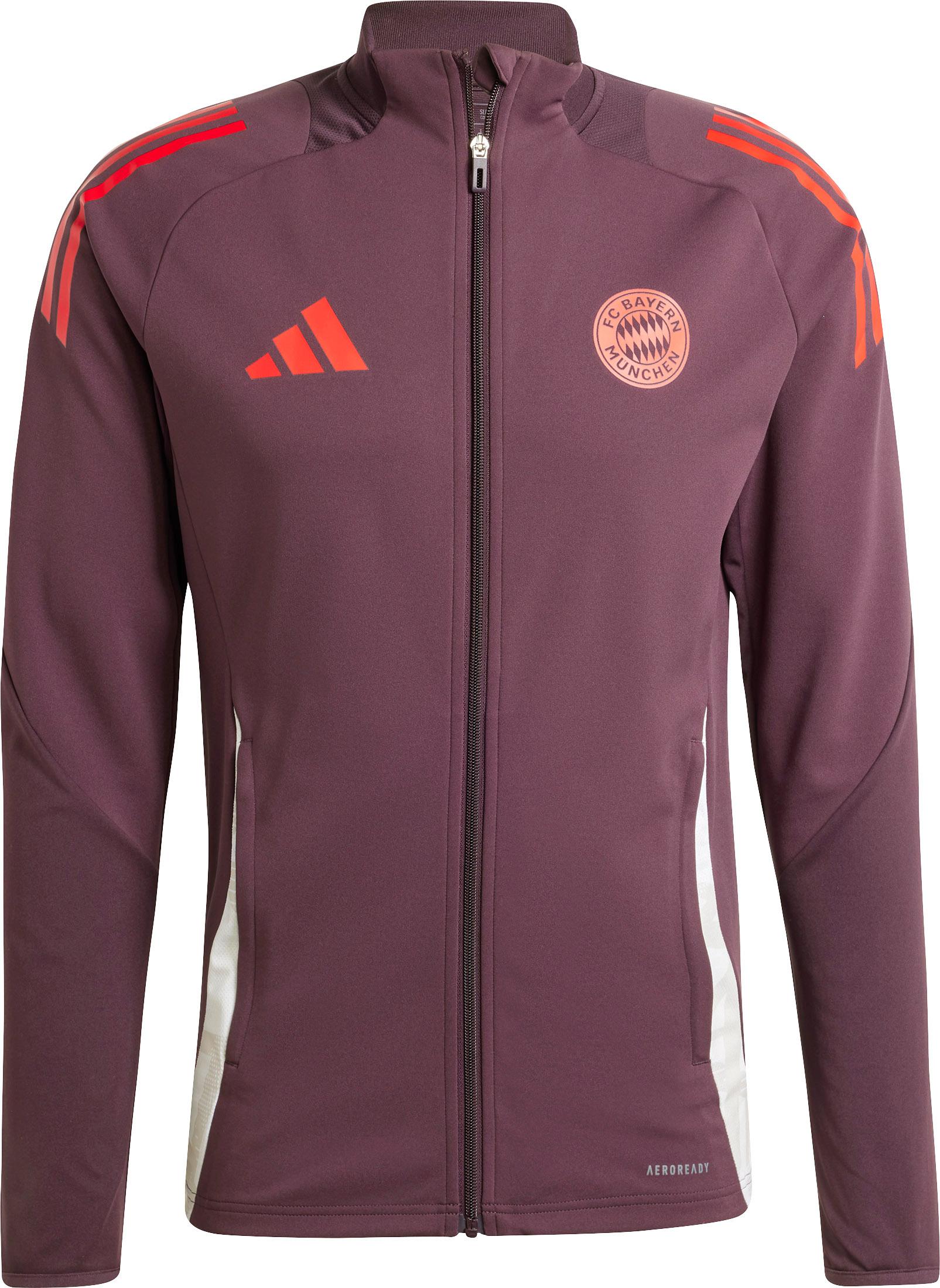 Strapazierfähige Trainingsjacke im Style des FC Bayern München; mit feuchtigkeitsregulierender, schnelltrocknender und atmungsaktiver AERO.RDY-Technologie; Stehkragen; durchgehender Frontreißverschluss; 3-Streifen an den Schultern; Marken- und Vereinslogo auf der Brust; 2 seitliche Reißverschlusstaschen; kontrastierende Seiteneinsätze; abgerundeter Saum; Material 100% Polyester (recycelt).