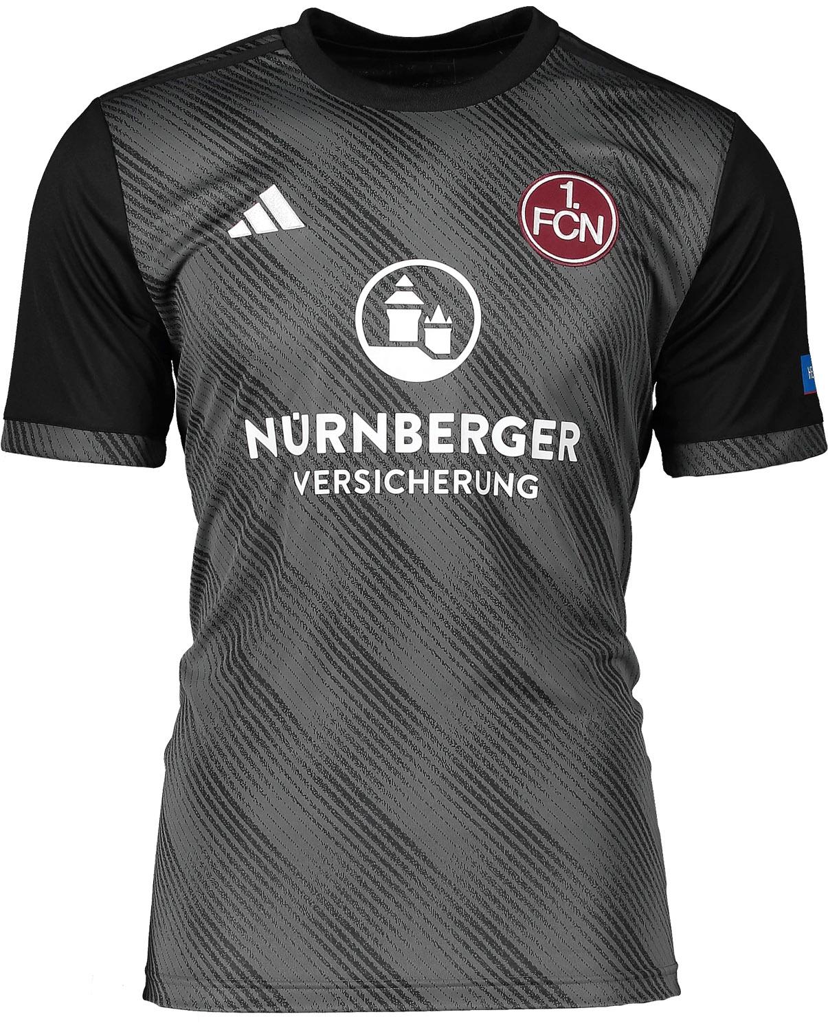 Ausweichtrikot des 1. FC Nürnberg zur Saison 2024/25; aus strapazierfähigem Material mit atmungsaktiver, feuchtigkeitsregulierender und schnelltrocknender AERO.RDY-Funktion; Rundhalsausschnitt; Allover-Print; Logos auf der Vorderseite; Material 100% Polyester (recycelt).