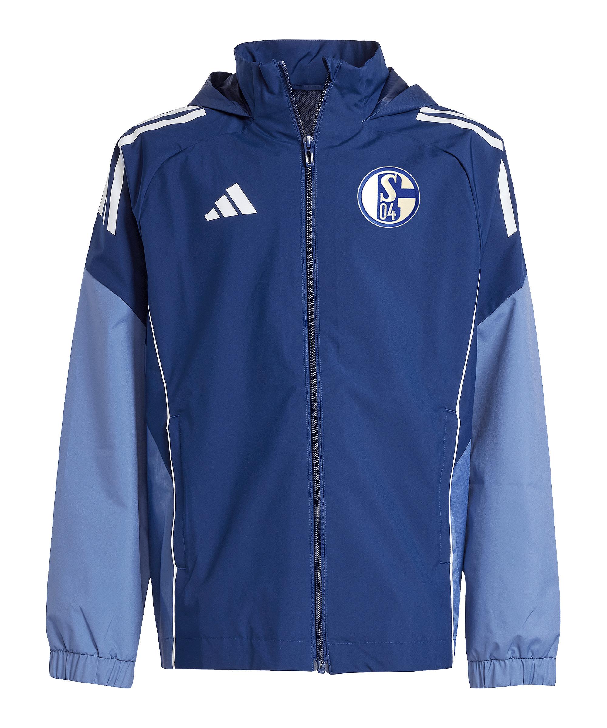 Mit der adidas FC Schalke 04 Regenjacke Kids bist du bestens gerüstet, um auch bei Regenwetter draußen zu spielen oder dein Team anzufeuern. Diese coole Jacke ist genau das Richtige für junge Schalke-Fans, die auch bei schlechtem Wetter nicht auf ihr Training verzichten wollen. Die Jacke punktet mit einem stylischen Vereinswappen auf der Brust, das deinen Stolz für den FC Schalke 04 zeigt. Die Reißverschlusstaschen an der Seite bieten dir Platz für deine kleinen Schätze oder einfach, um die Hände warmzuhalten. Dank des durchgehenden Reißverschlusses und der praktischen Kapuze bleibst du trocken und kannst dich voll auf dein Spiel konzentrieren. Schnapp dir die adidas FC Schalke 04 Regenjacke Kids und zeig, dass du ein echter Fan bist, egal bei welchem Wetter. Du wirst die Qualität und den Style von adidas lieben! Produktdetails:Herstellerfarbbezeichnung: TENABL/CREBLUHauptfarbe: BlauTaschen: Reißverschlusstaschen an der SeiteTechnologie-Eigenschaften: komfortabel, leicht, wasserabweisendExtra Details: KapuzeMaterial: 100% Polyester