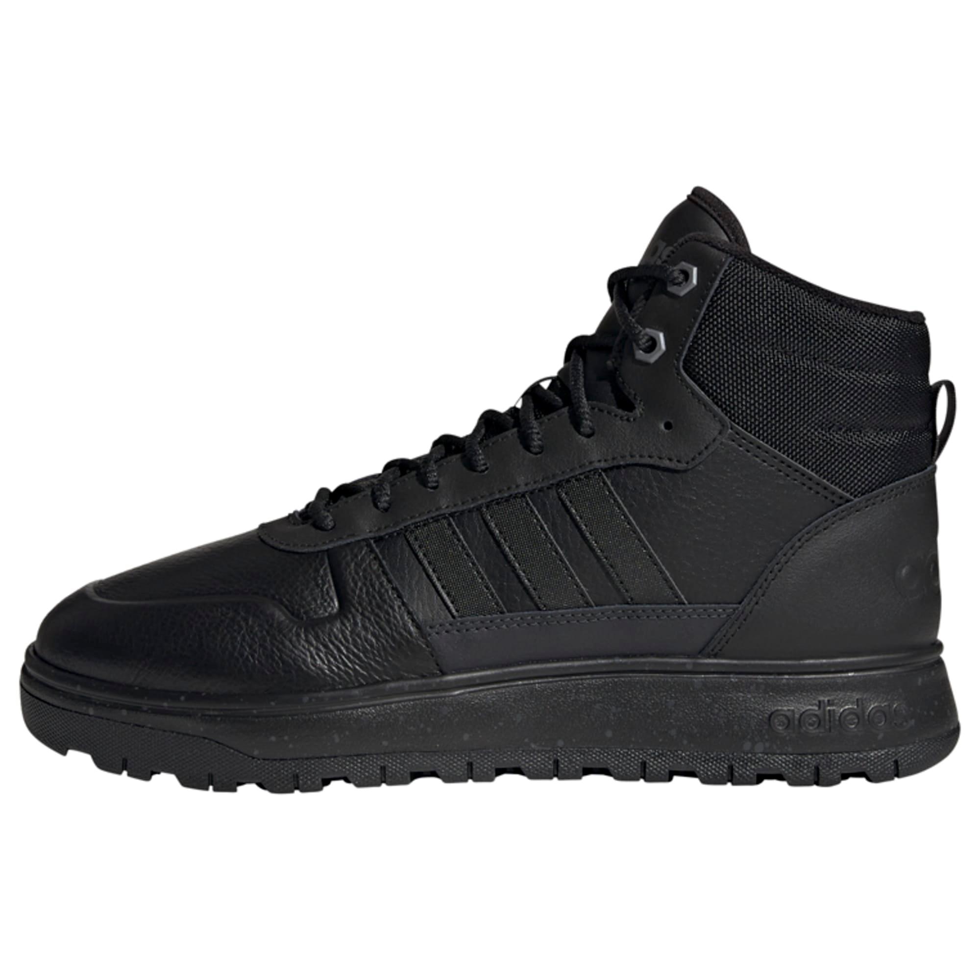 Basketball-inspirierte Sneaker mit hohem Schaft; für winterliche Wetterbedingungen geeignet; Obermaterial aus Leder und Synthetik; normale Schnürung; Logo-Details an Zunge und Sohle; 3-Streifen an der Seite; wärmendes Futter; herausnehmbare OrthoLite®-Innensohle mit antibakteriellen Eigenschaften und geruchshemmender Wirkung; CloudFoam-Zwischensohle für eine optimale Dämpfung und bequemen Tragekomfort; profilierte Gummi-Außensohle; mit Recyclingmaterial hergestellt.
