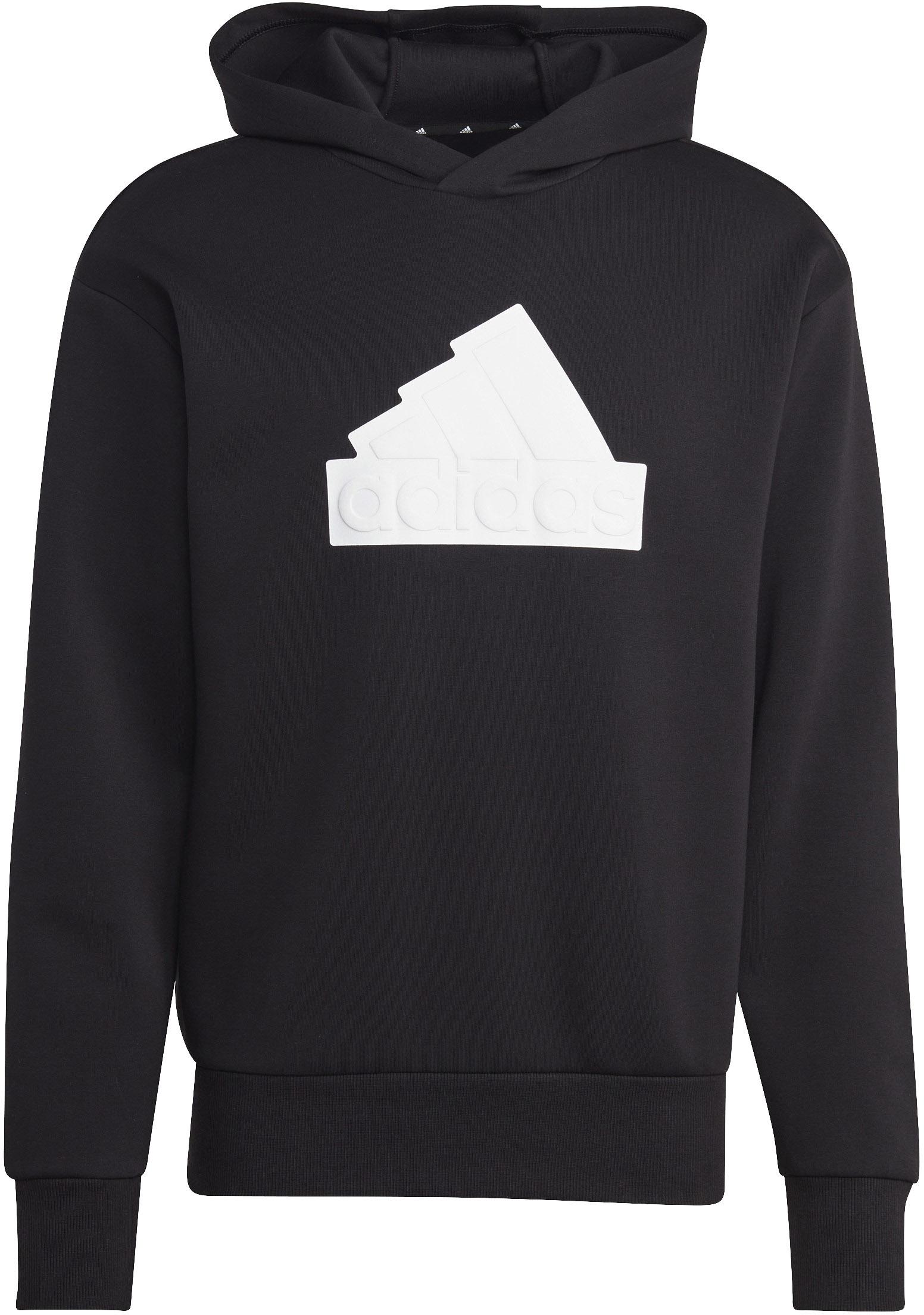 Hoodie mit großem, geflocktem Labelprint auf der Vorderseite; Kapuze; breite Rippbündchen an den Abschlüssen; mit recycelten Materialien gefertigt; Material 65% Baumwolle, 35% Polyester (recycelt).